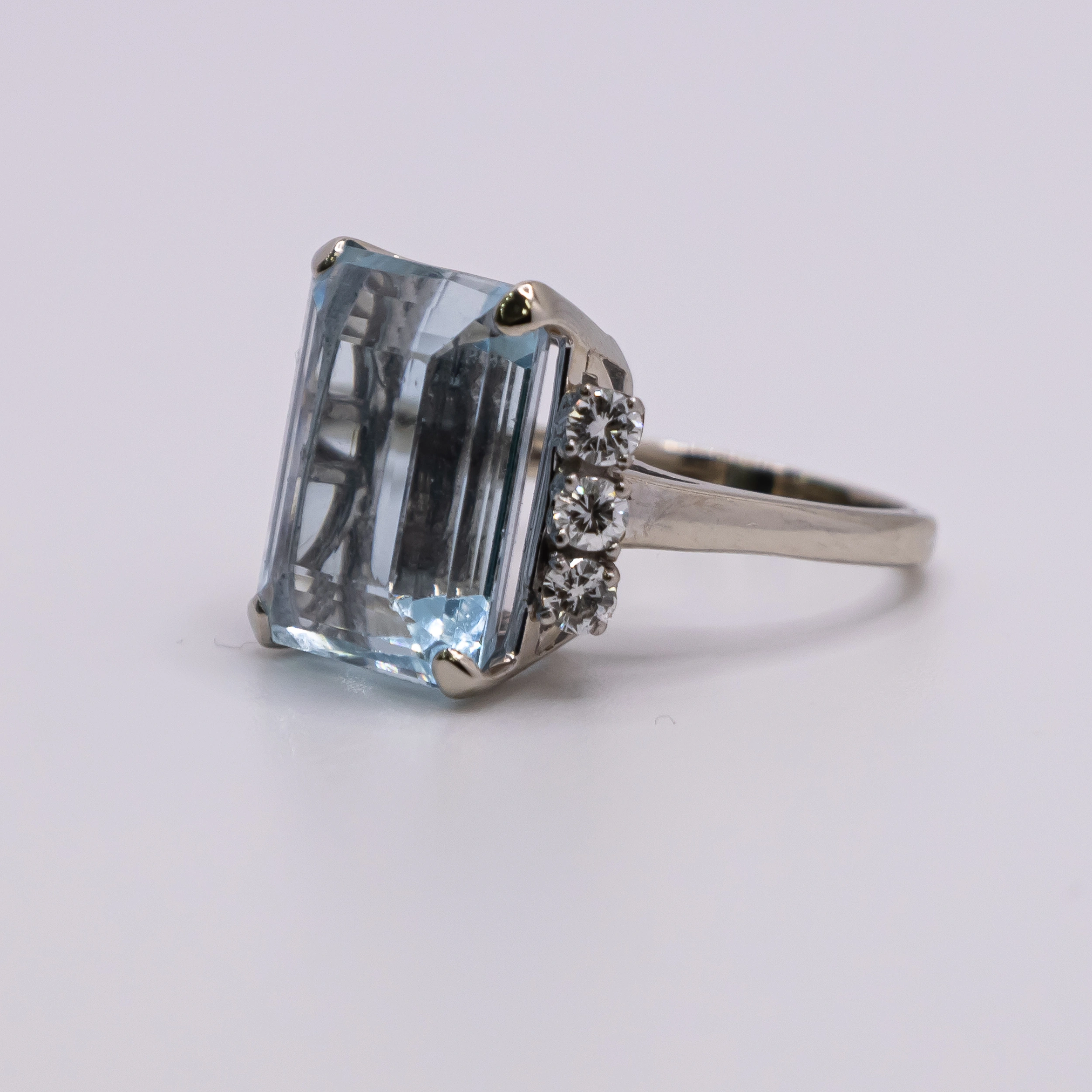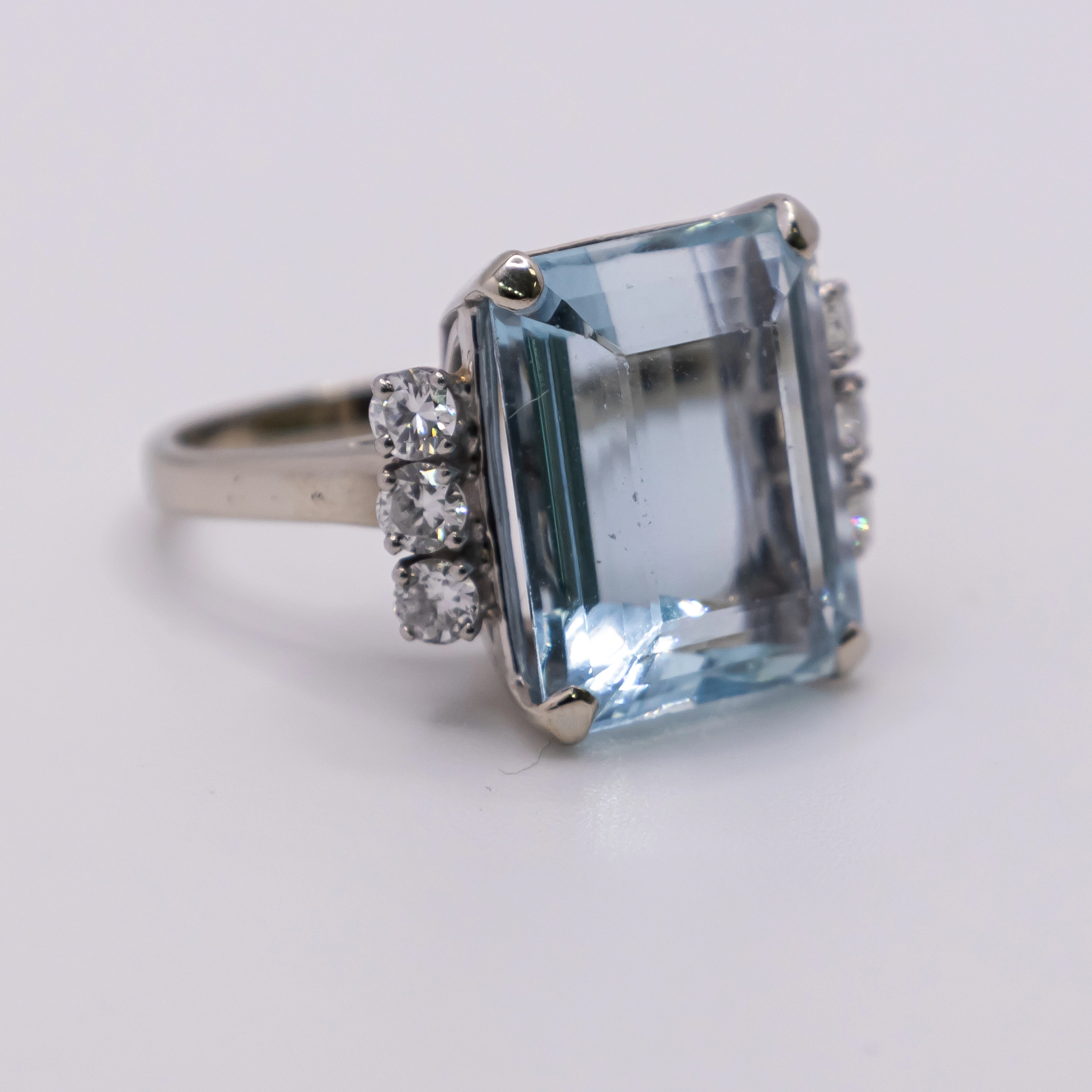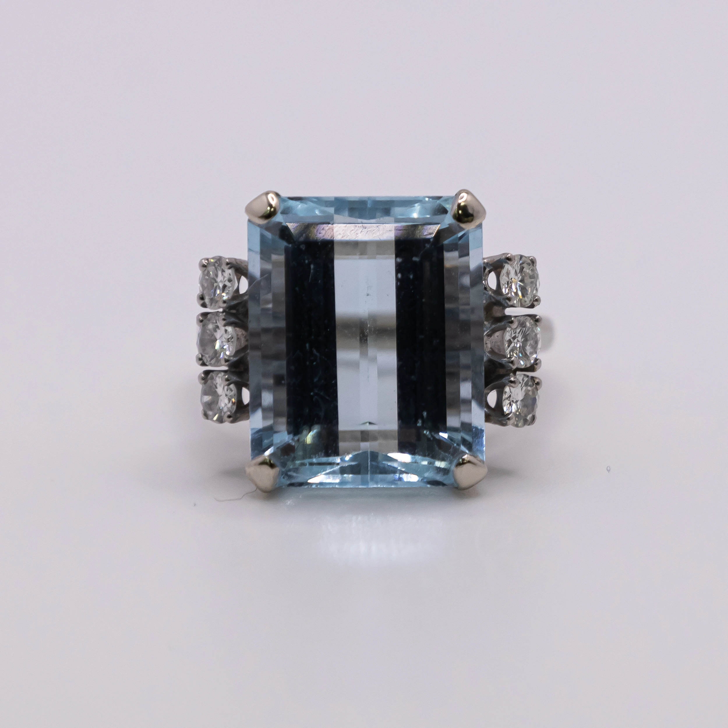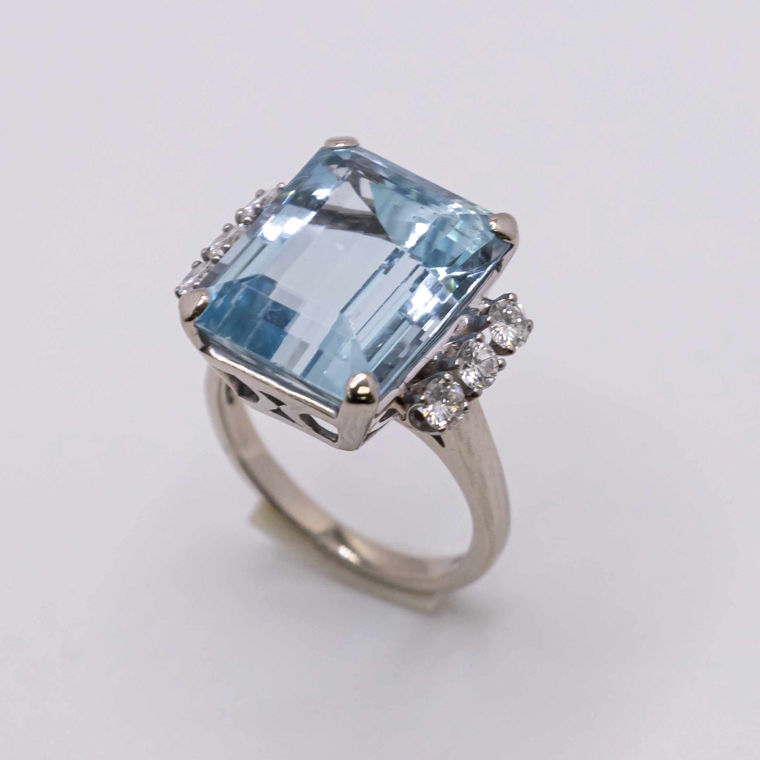 Anillo para Mujer en oro Blanco con Aguamarina y brillantes 14k, Size 6