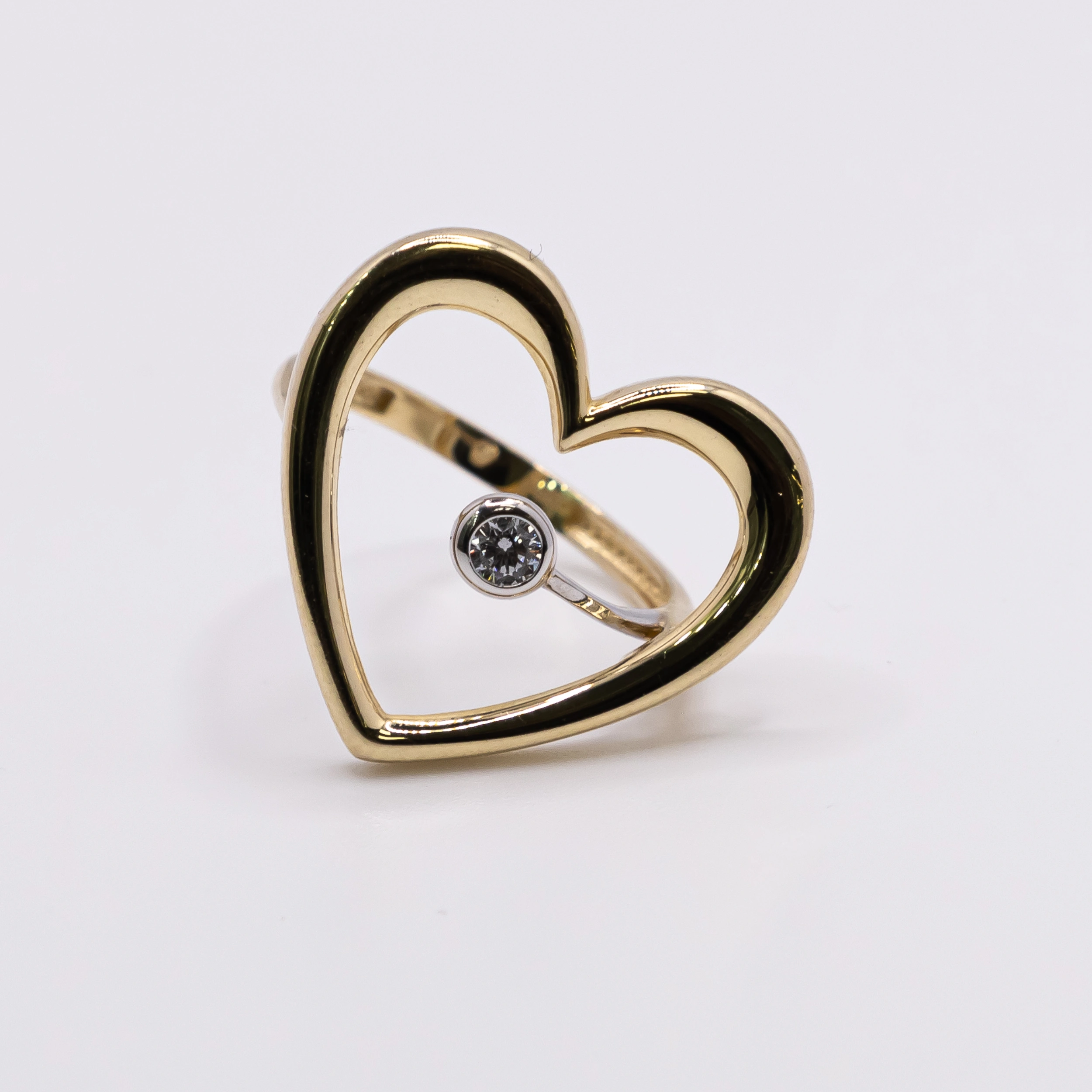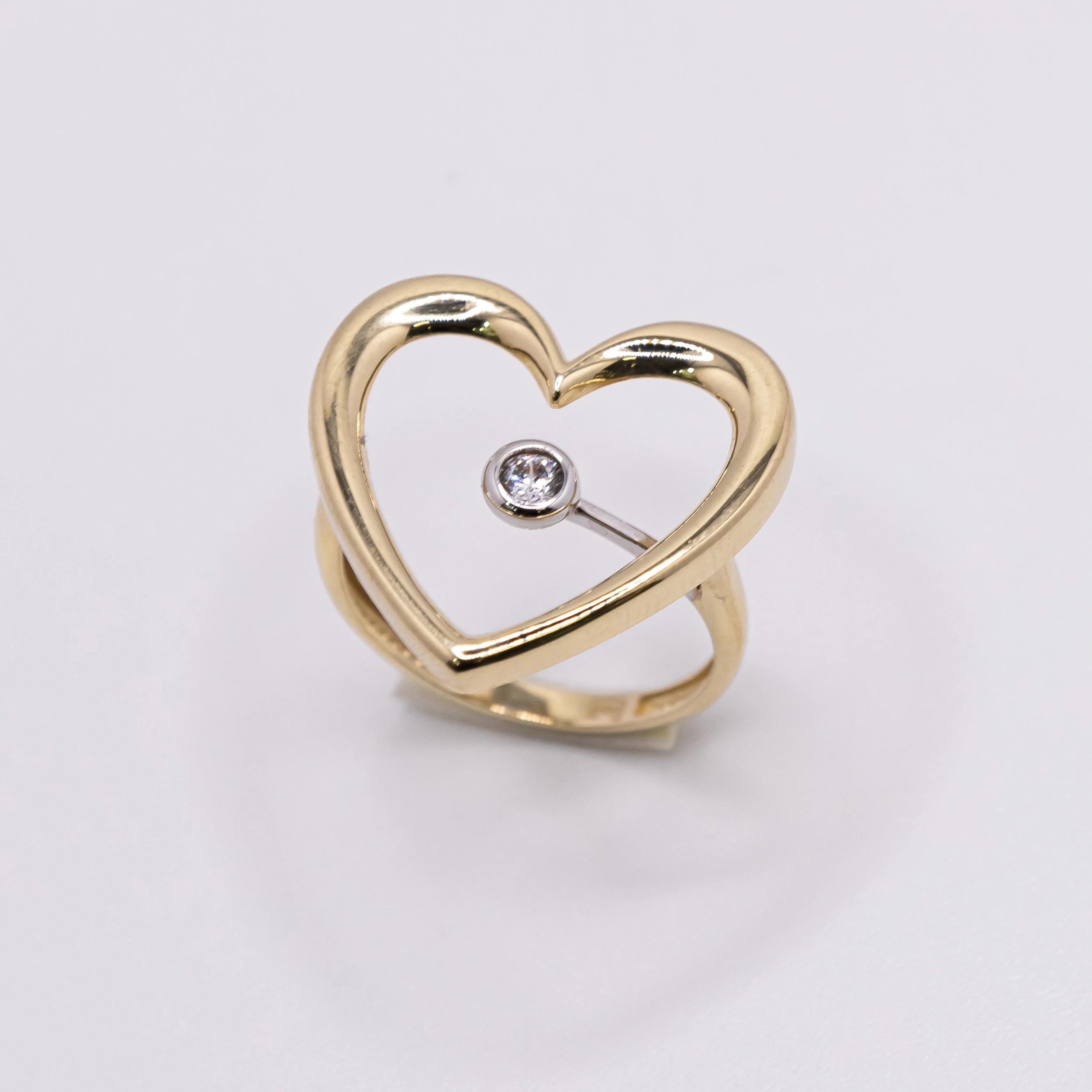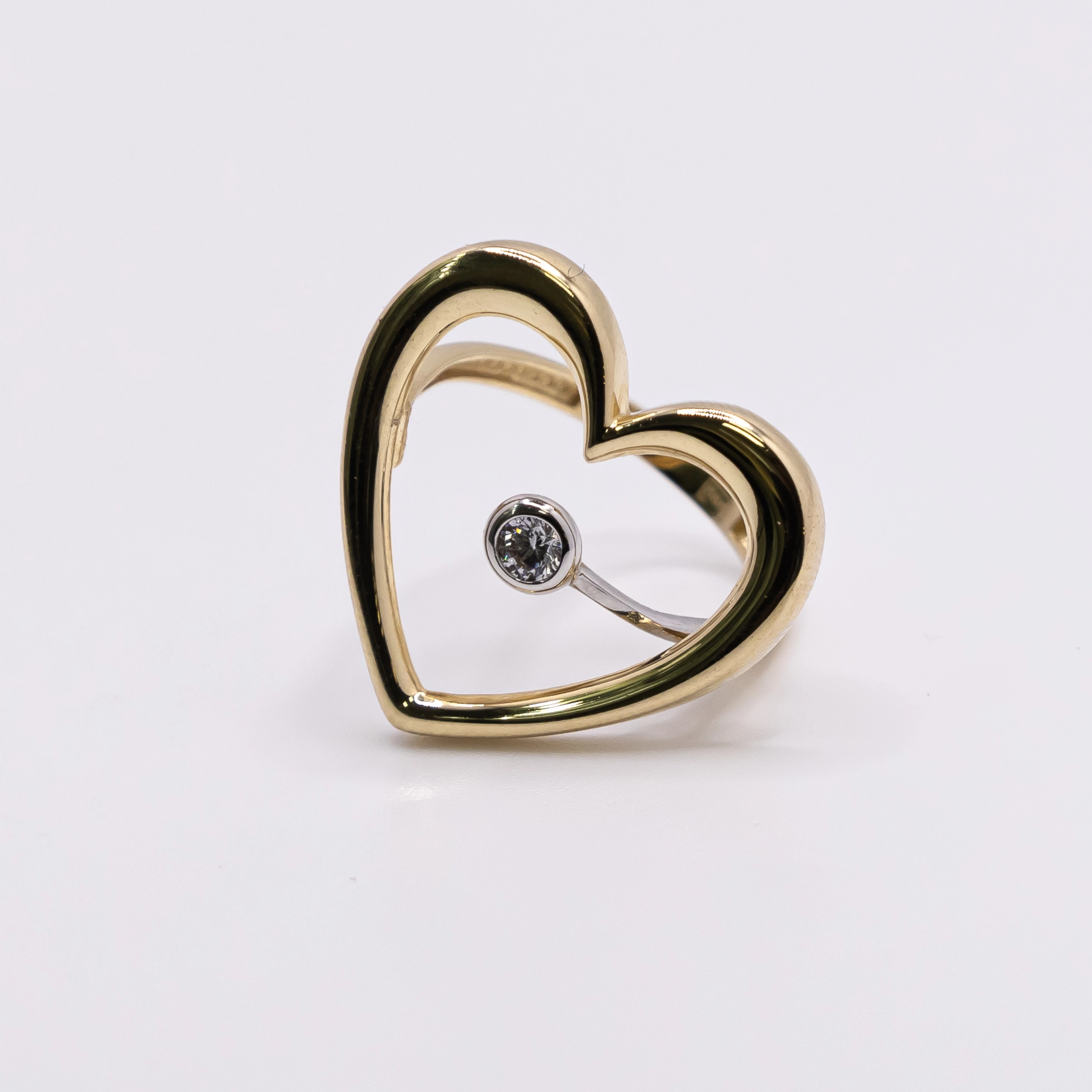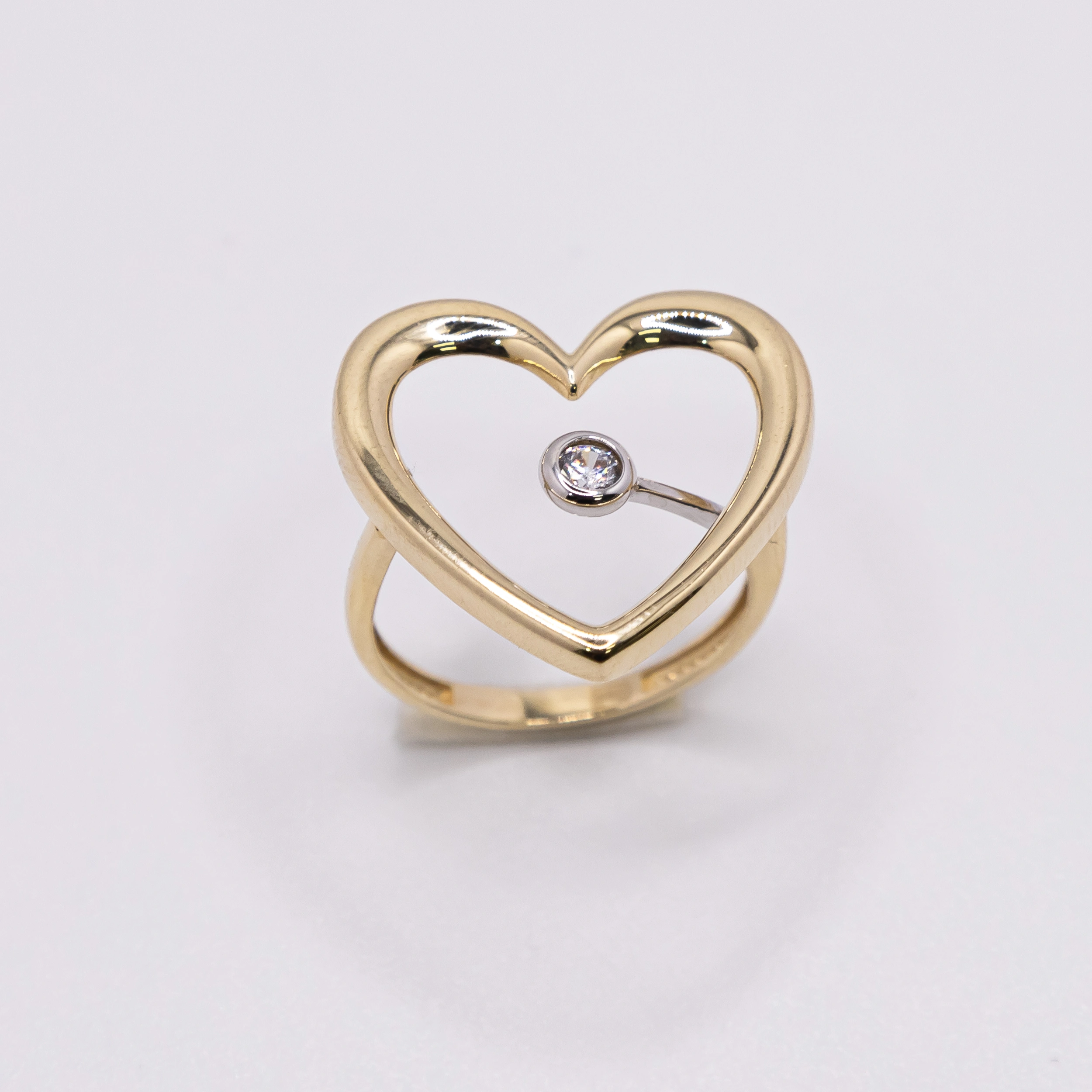 Anillo de oro 14k para mujer con diseño de corazón y piedra brillante, Size 7 1/2