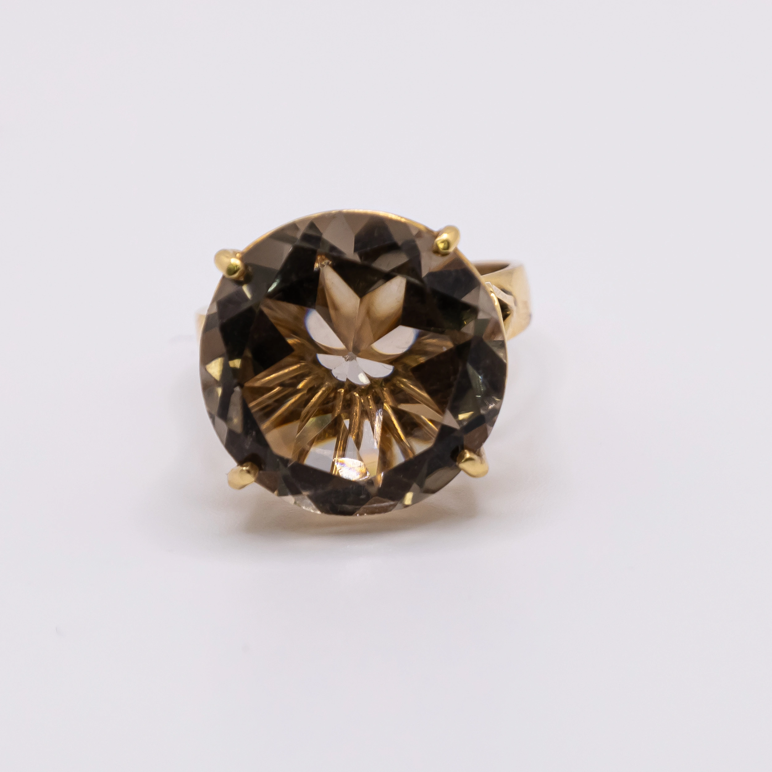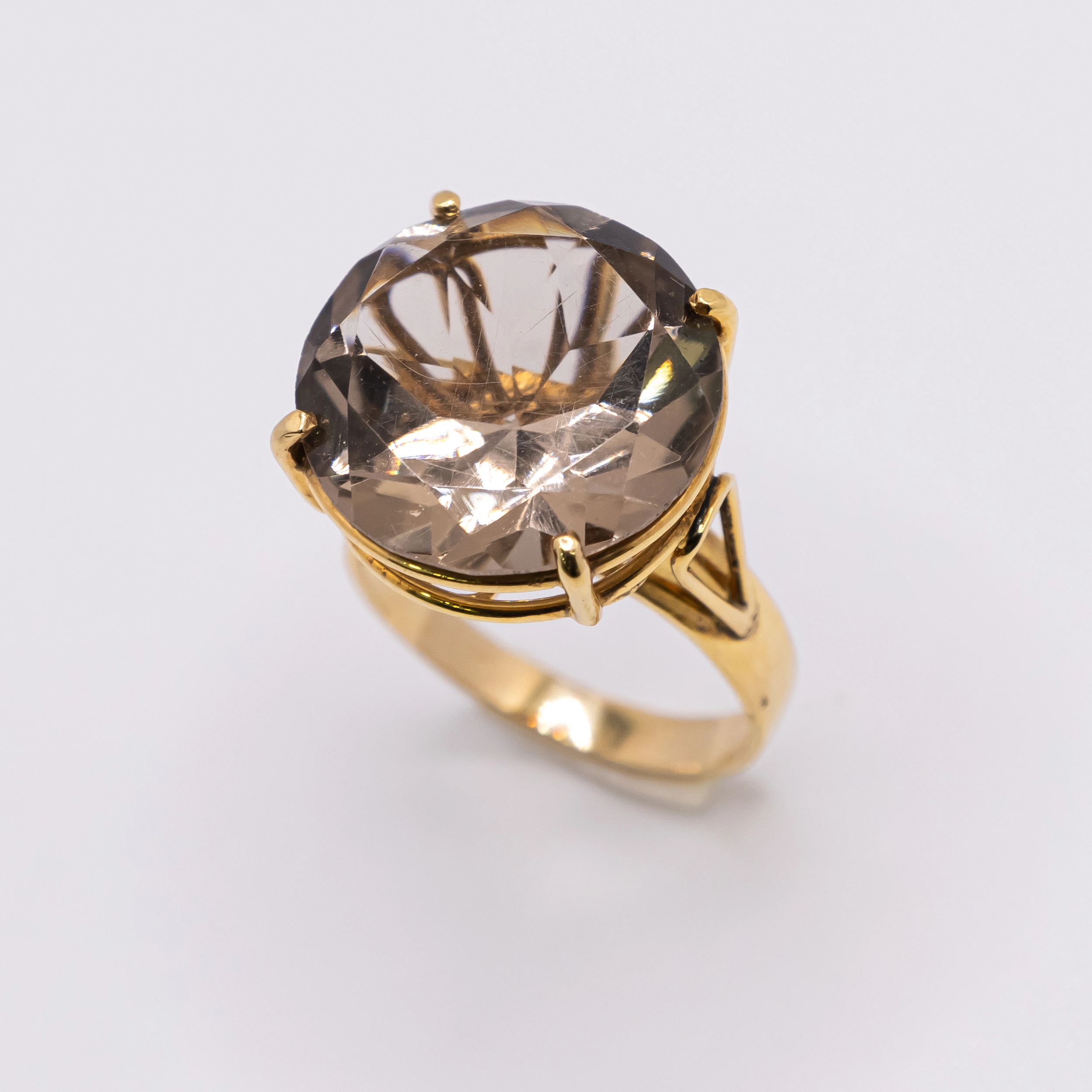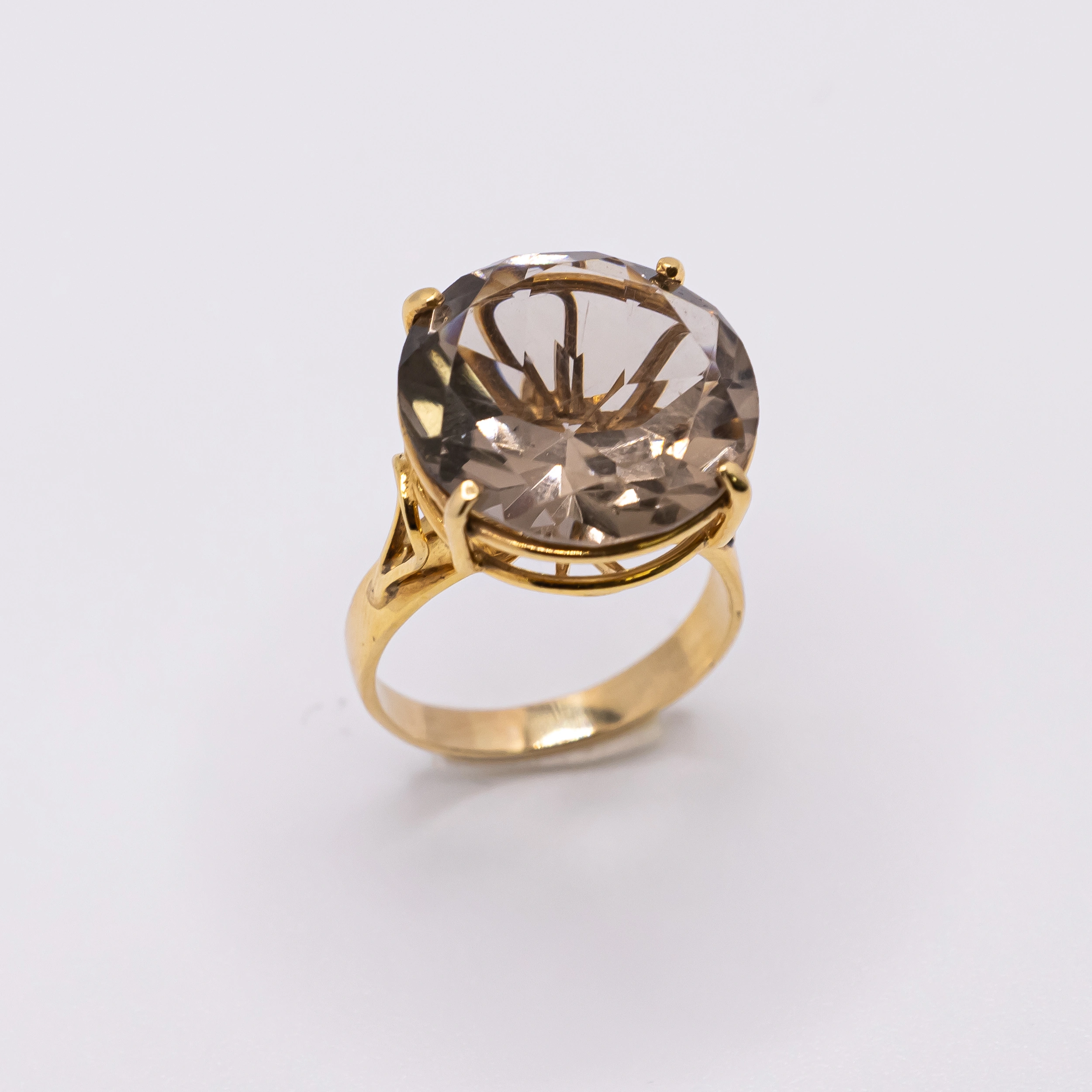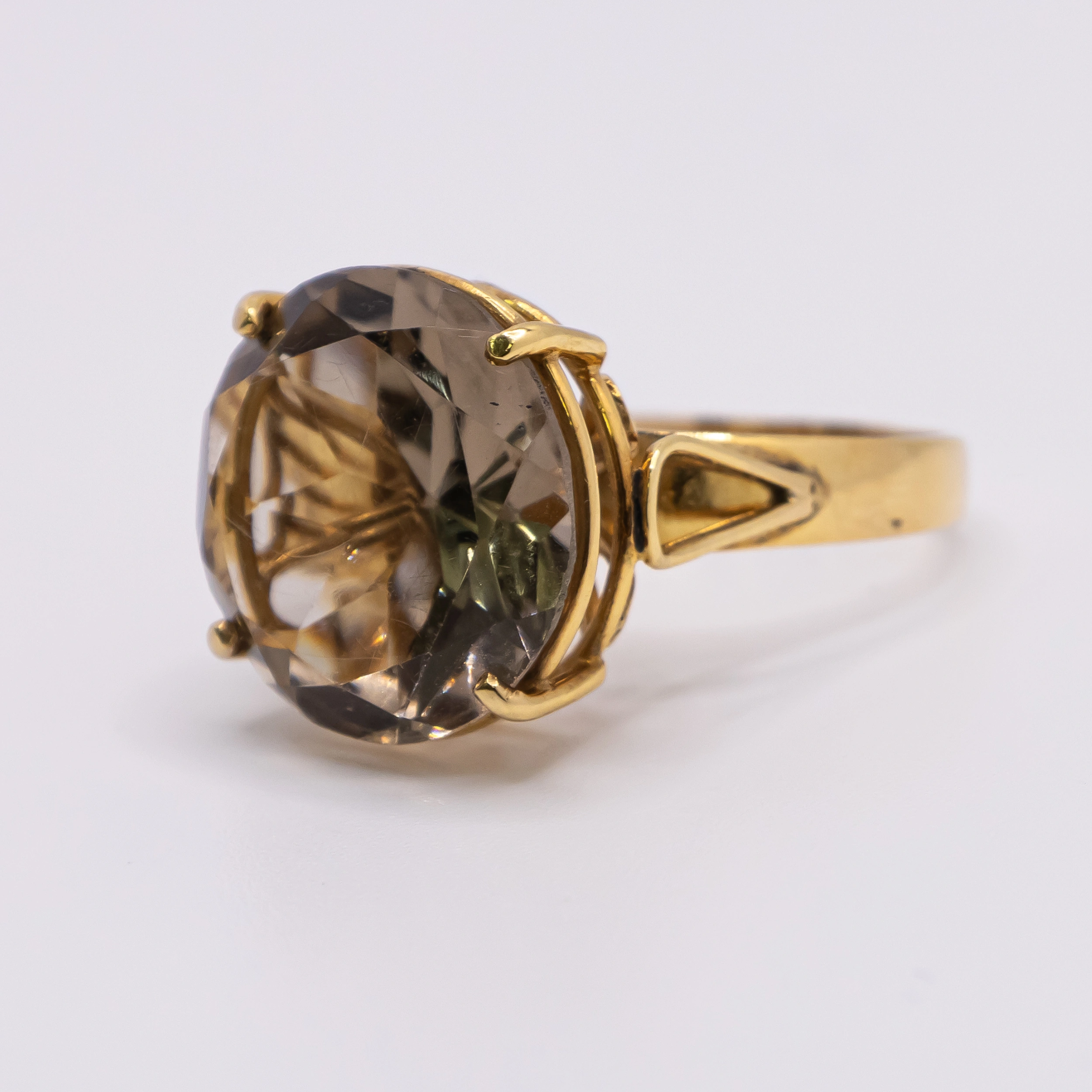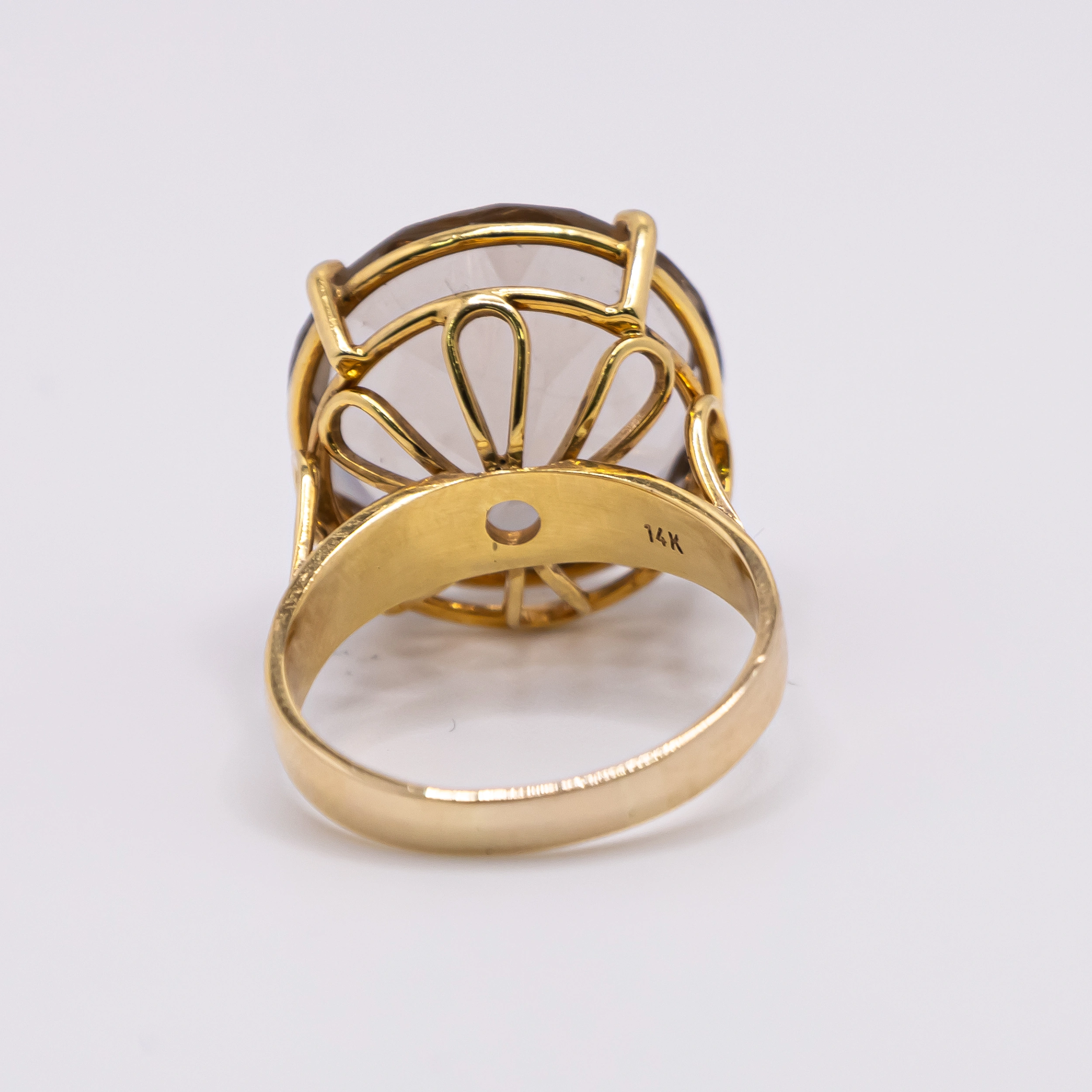 Anillo de Oro 14k para mujer con piedra grande color champan, Size 8