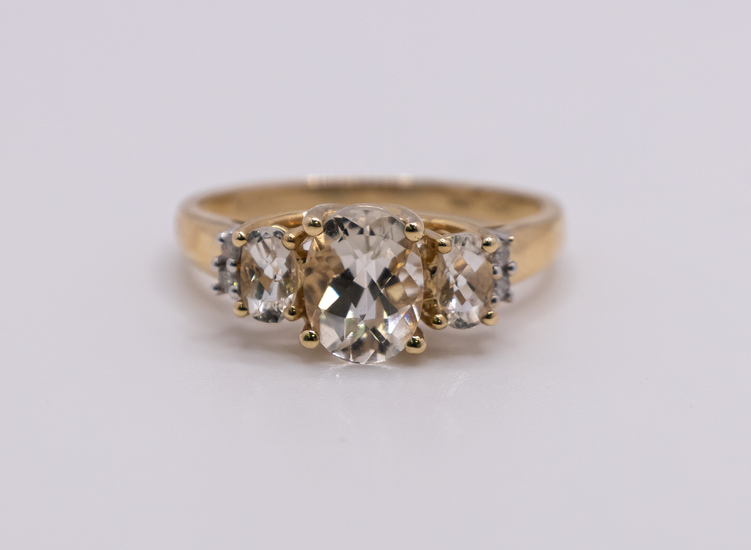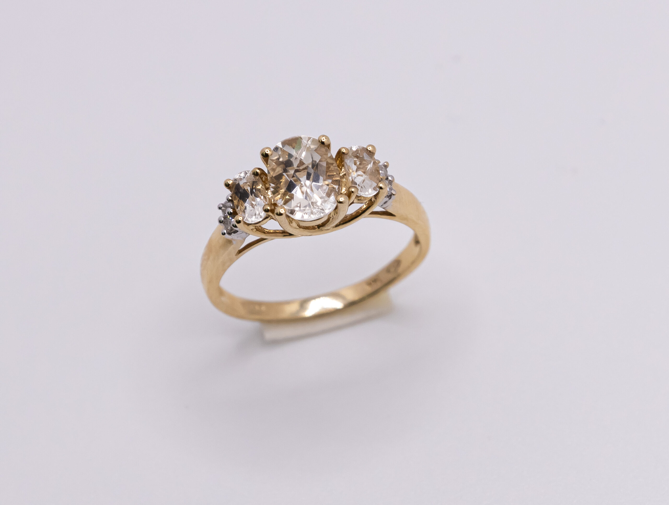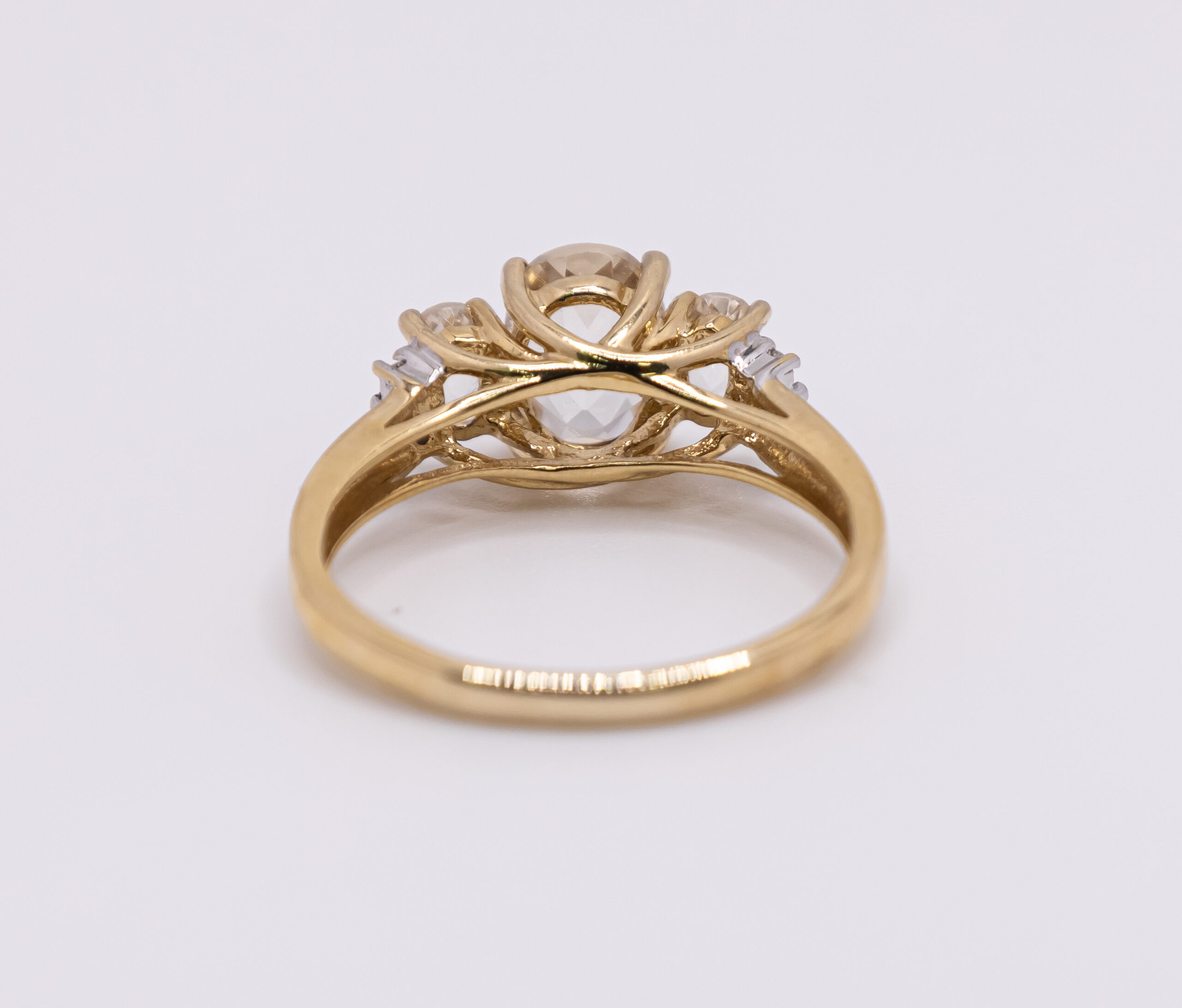 Anillo de Oro 14k para mujer con tres piedras cubicas con tono champan y zirconia blanca, Size 8