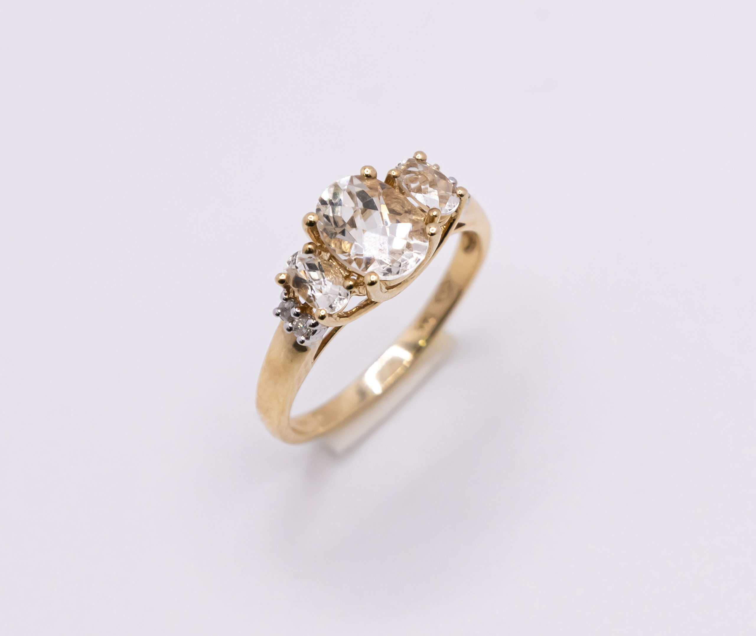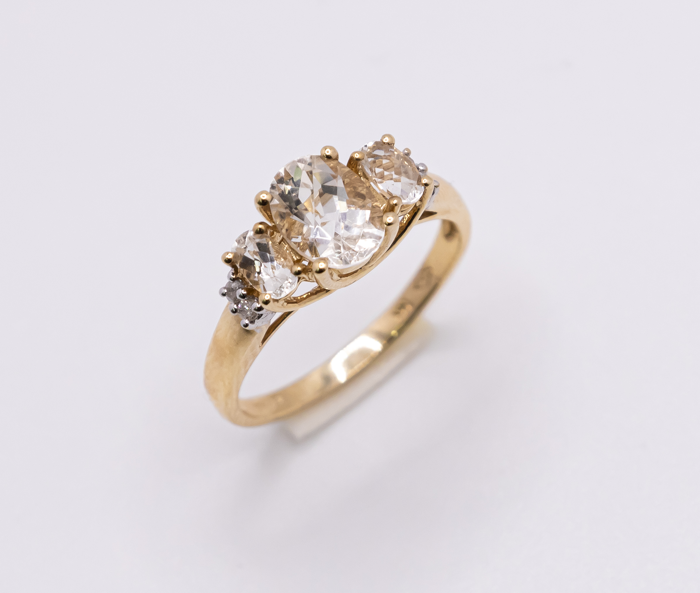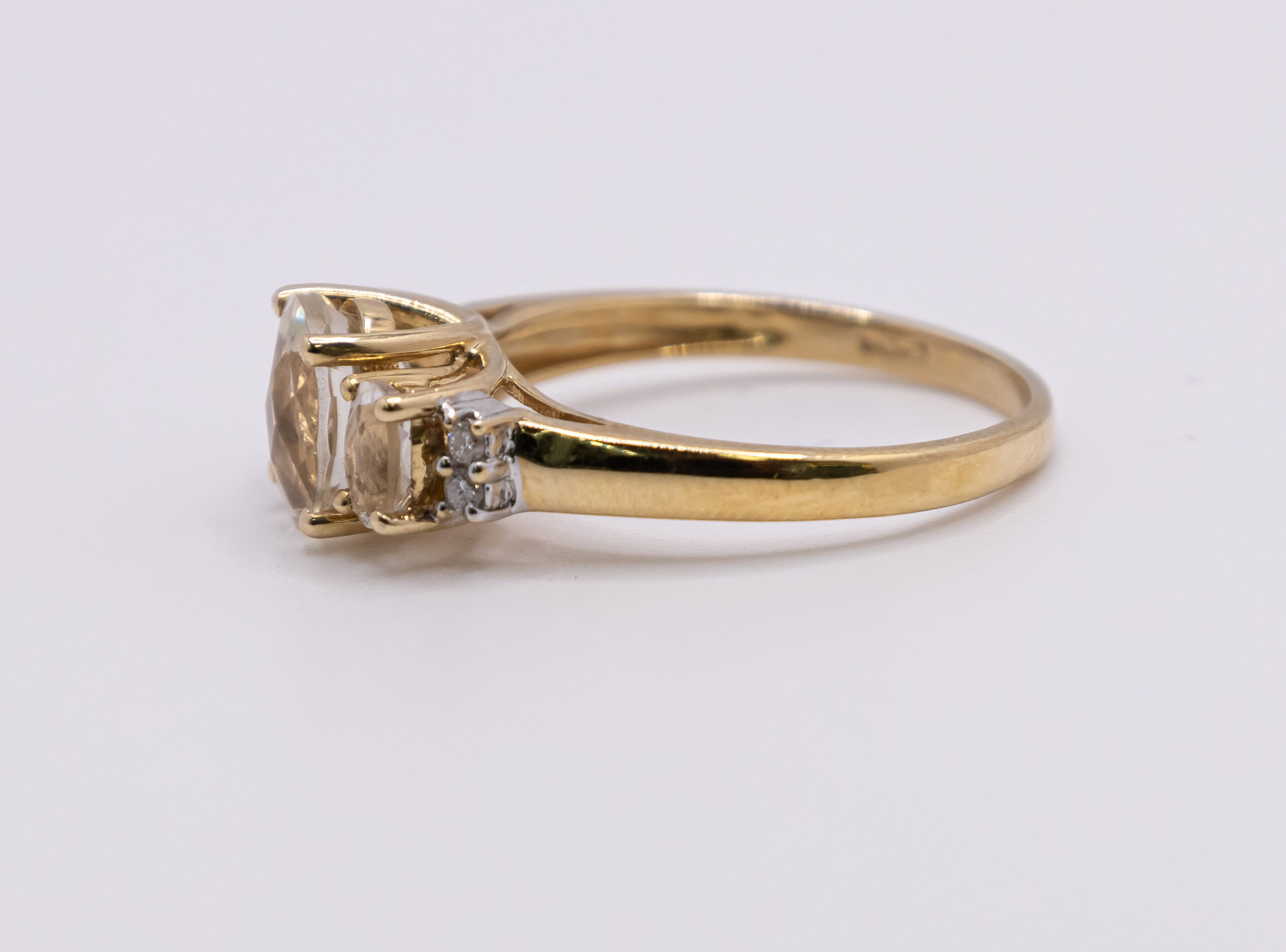 Anillo de Oro 14k para mujer con tres piedras cubicas con tono champan y zirconia blanca, Size 8