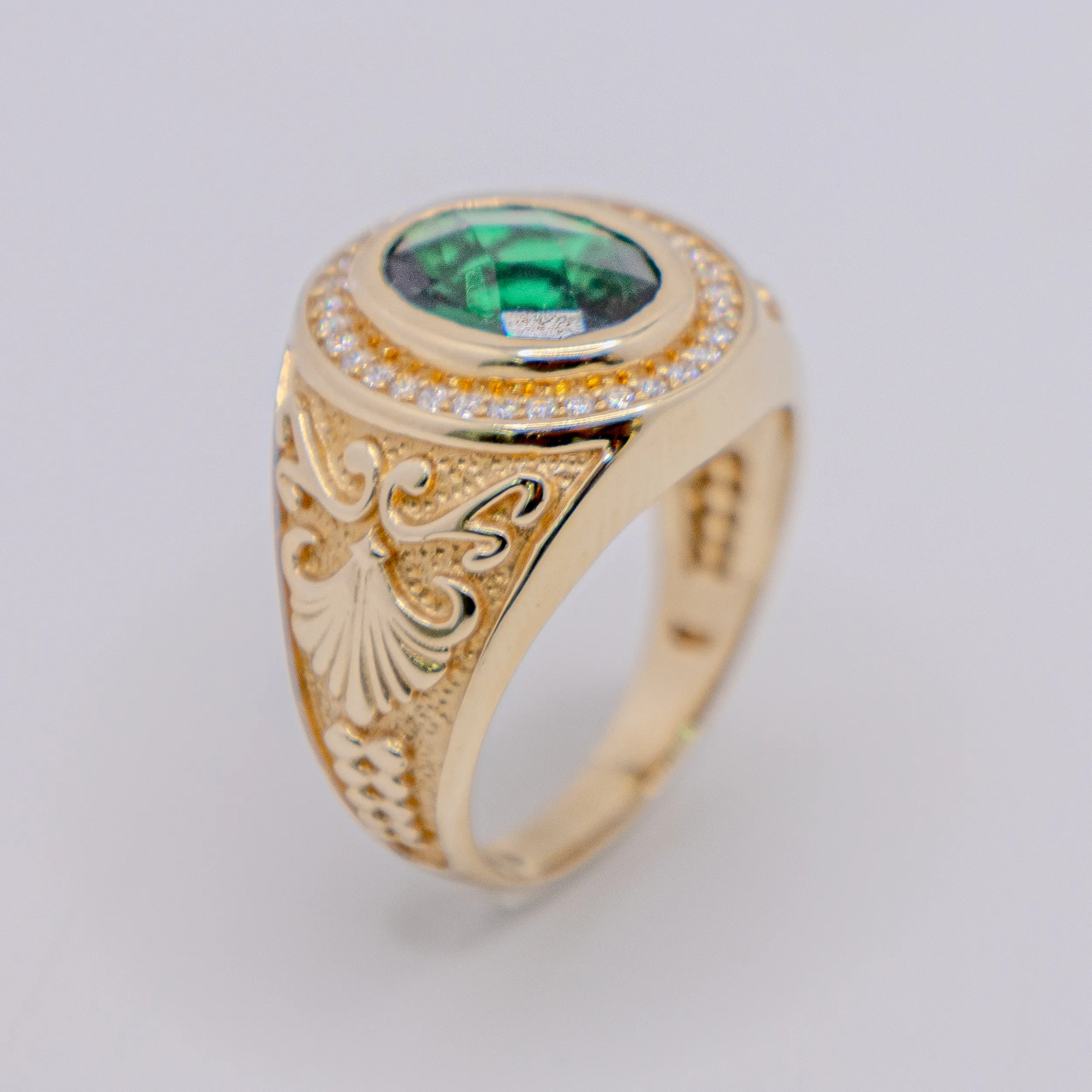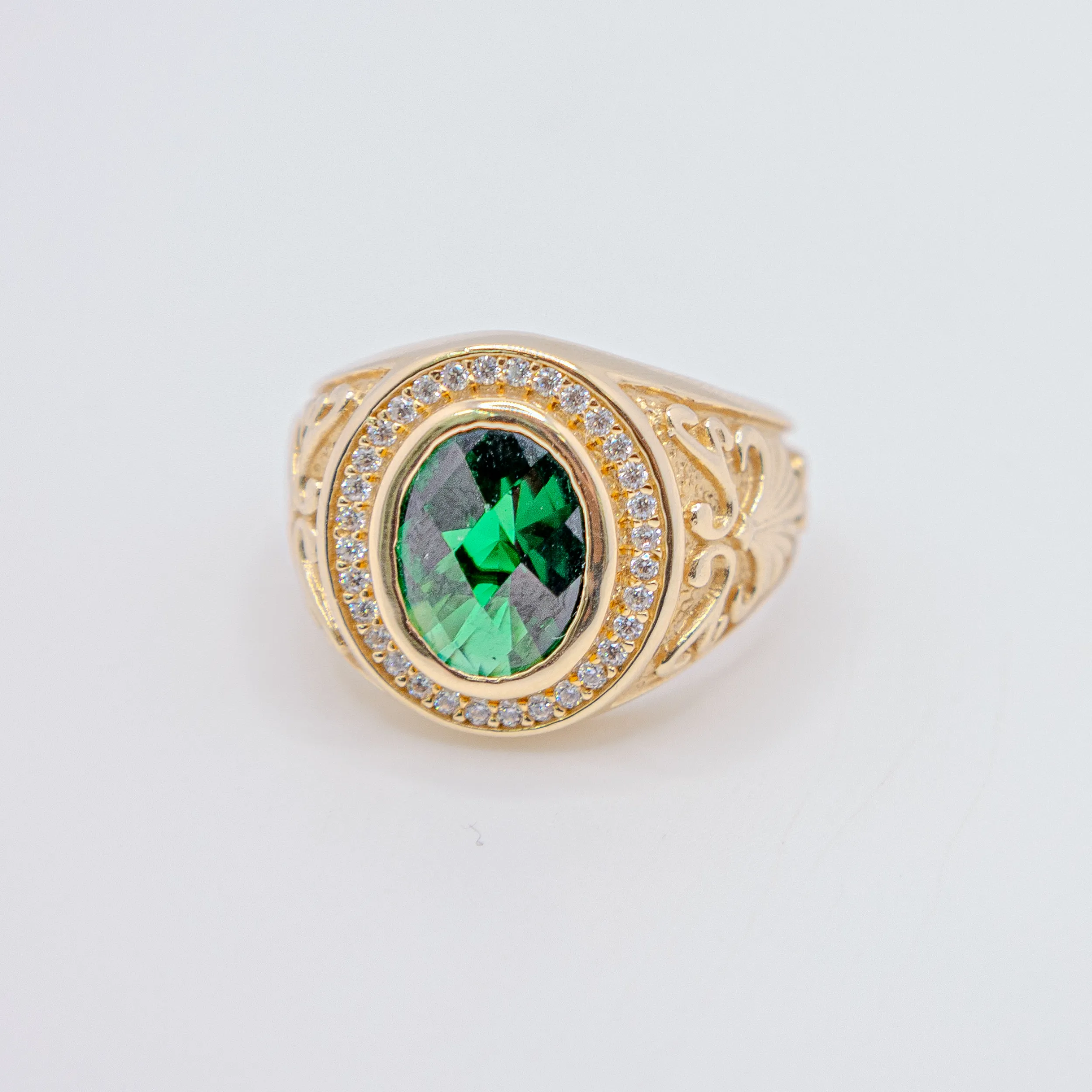 Anillo para Hombre,Ovalo color Esmeralda y Zirconia