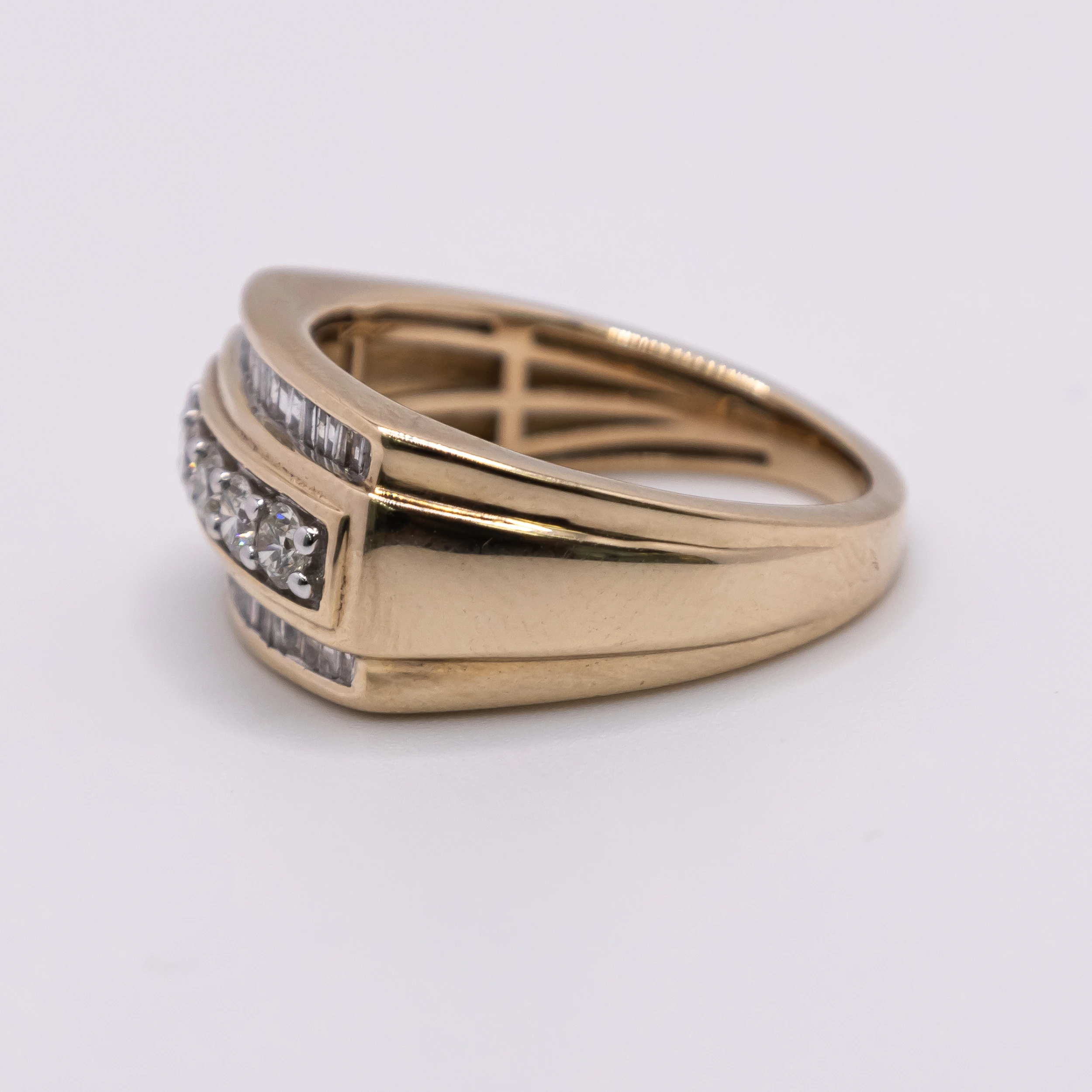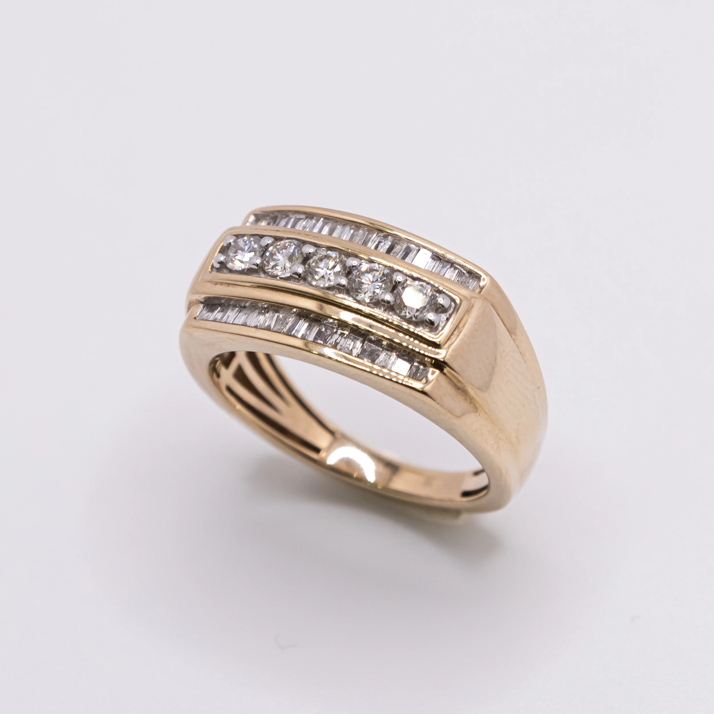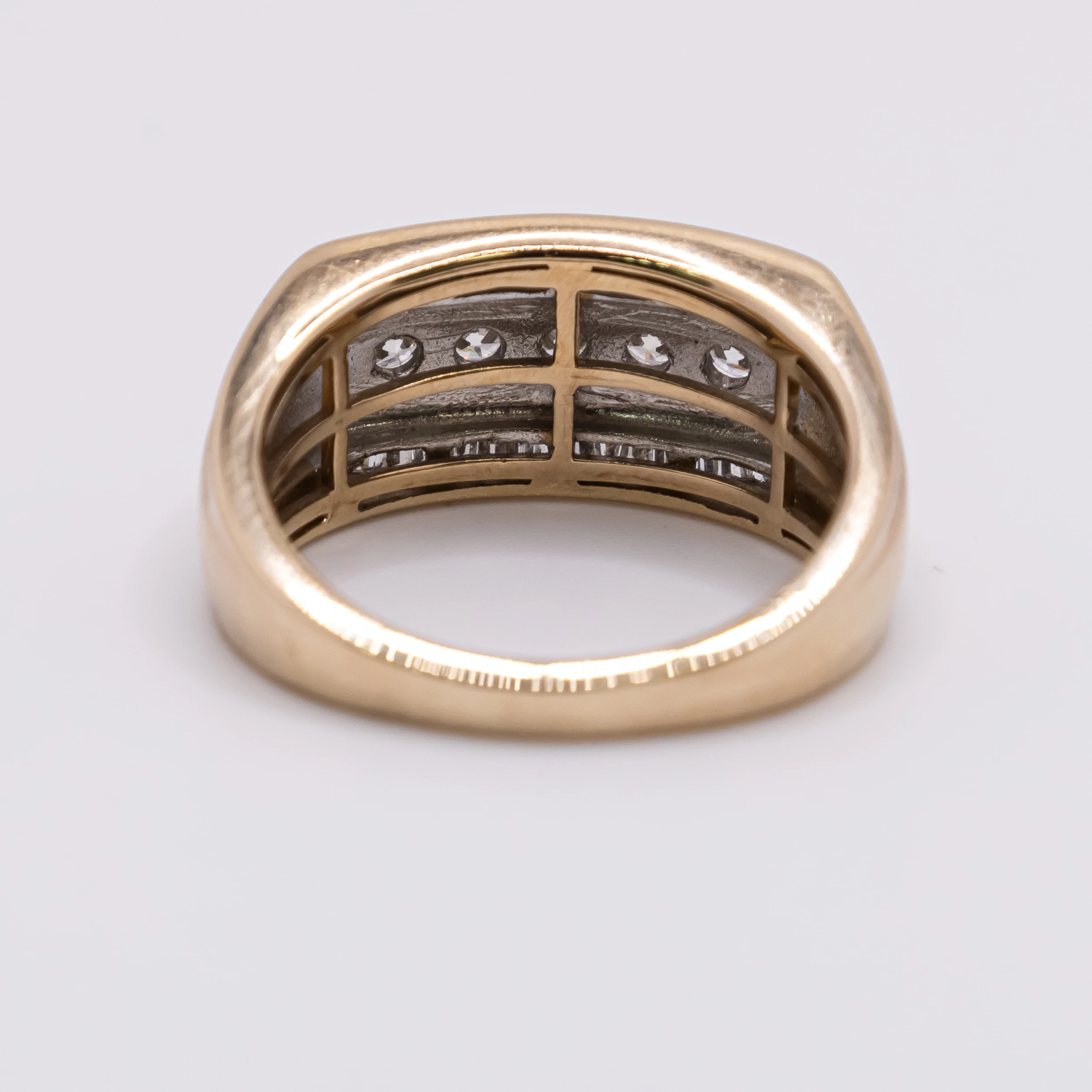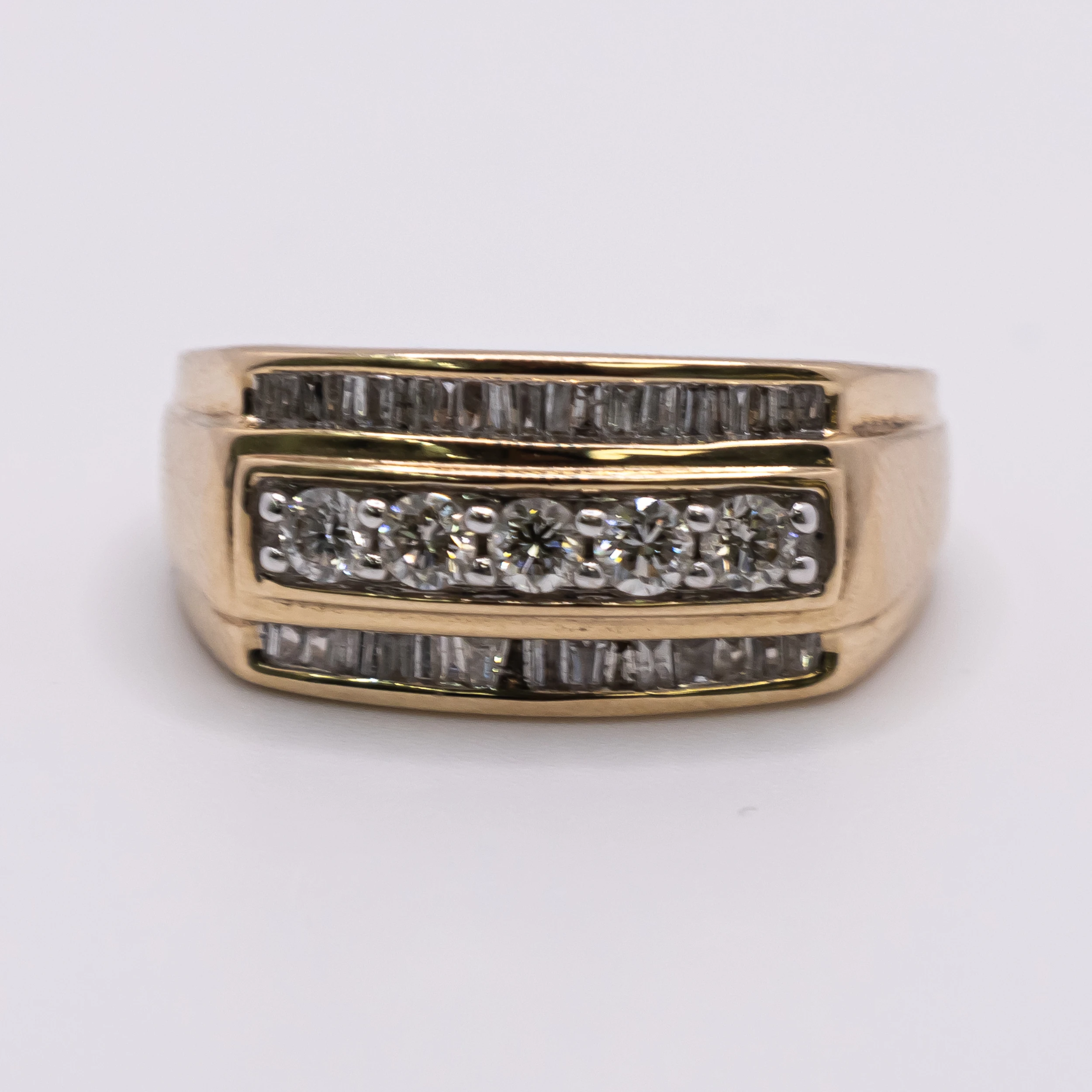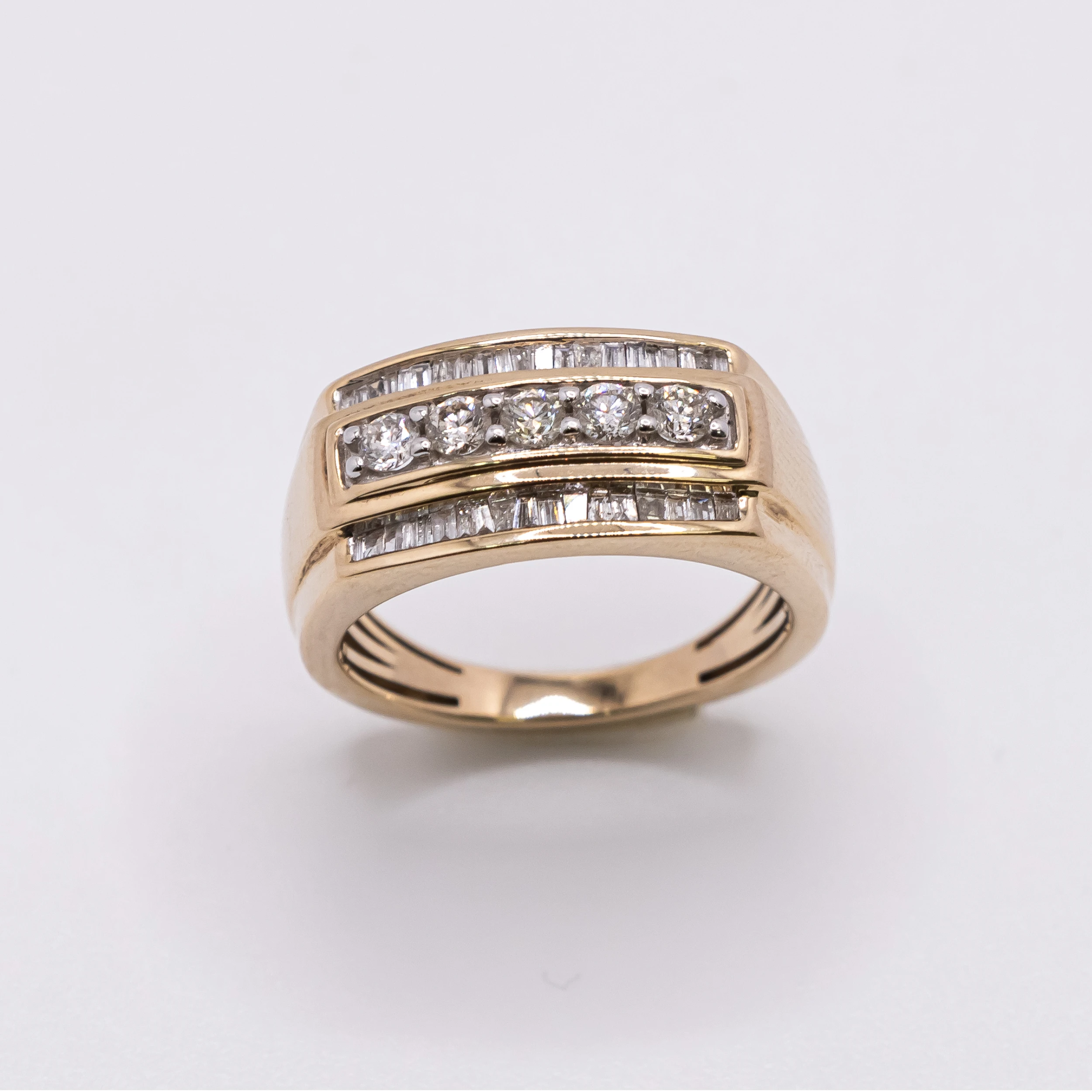 Oro 10k con brillantes redondos y en forma de bague, Size 9 1/2 y 8,5g