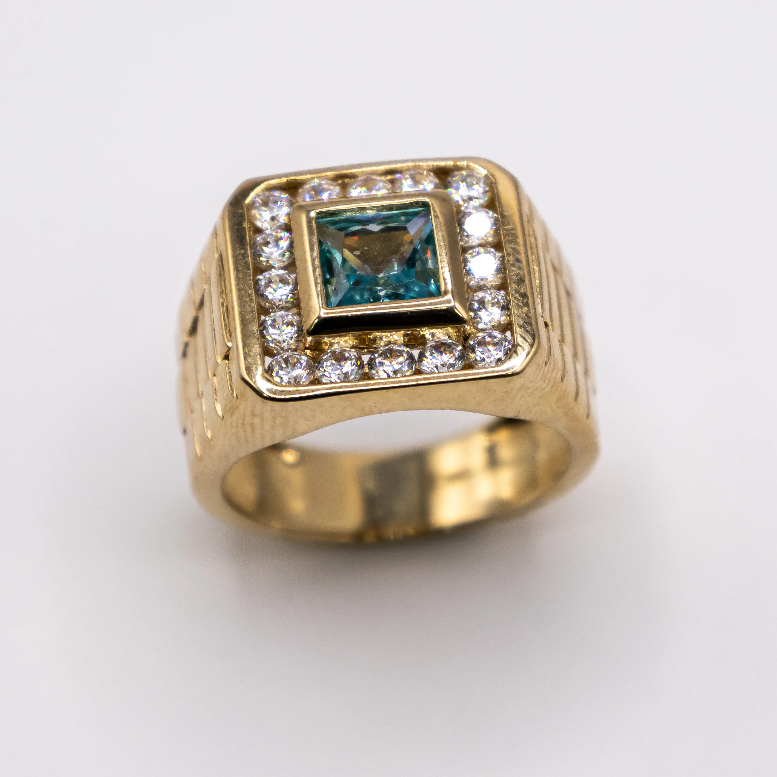 Oro 10k, zirconia rodeando piedra azul marino, Size 10 1/2 10.4g