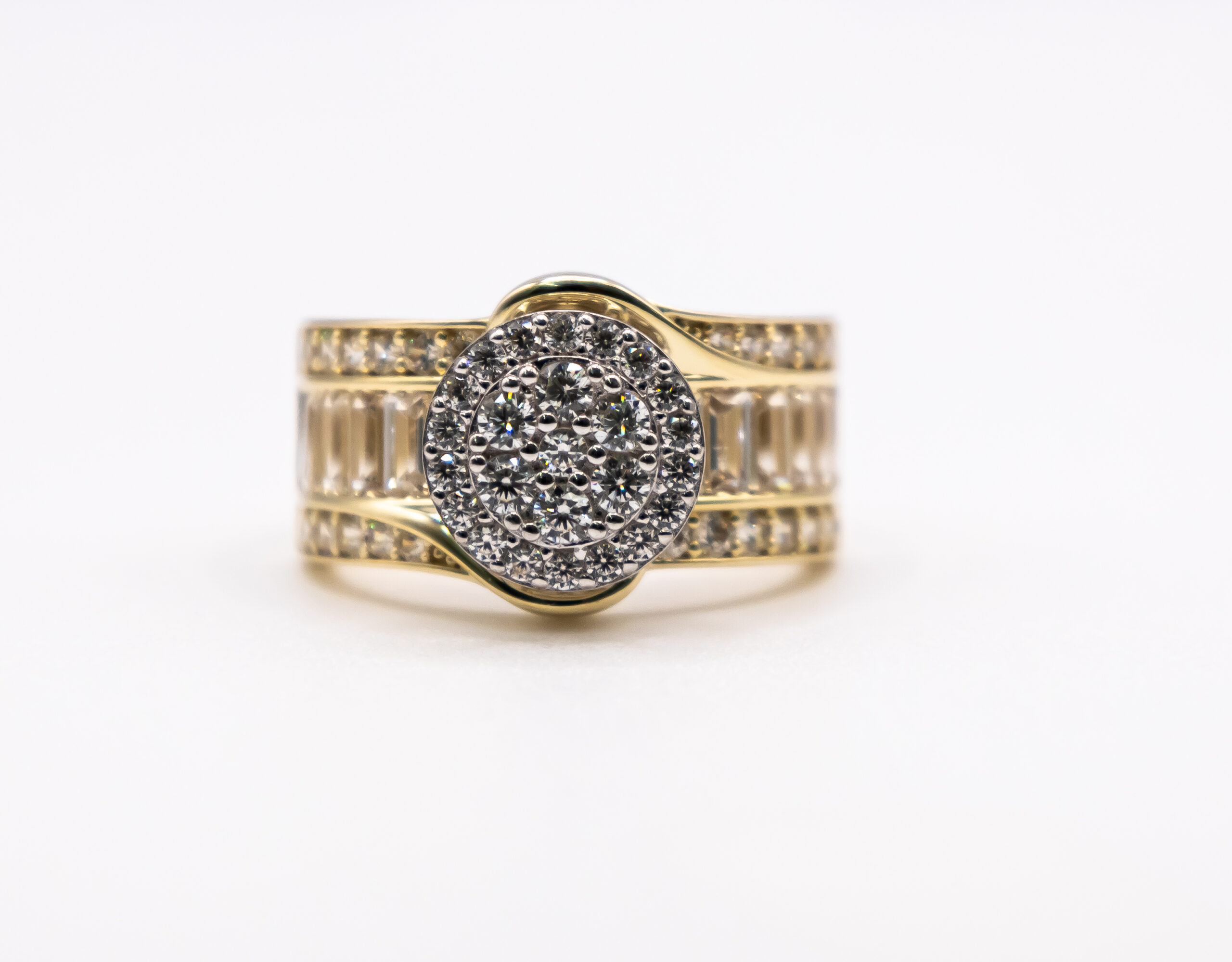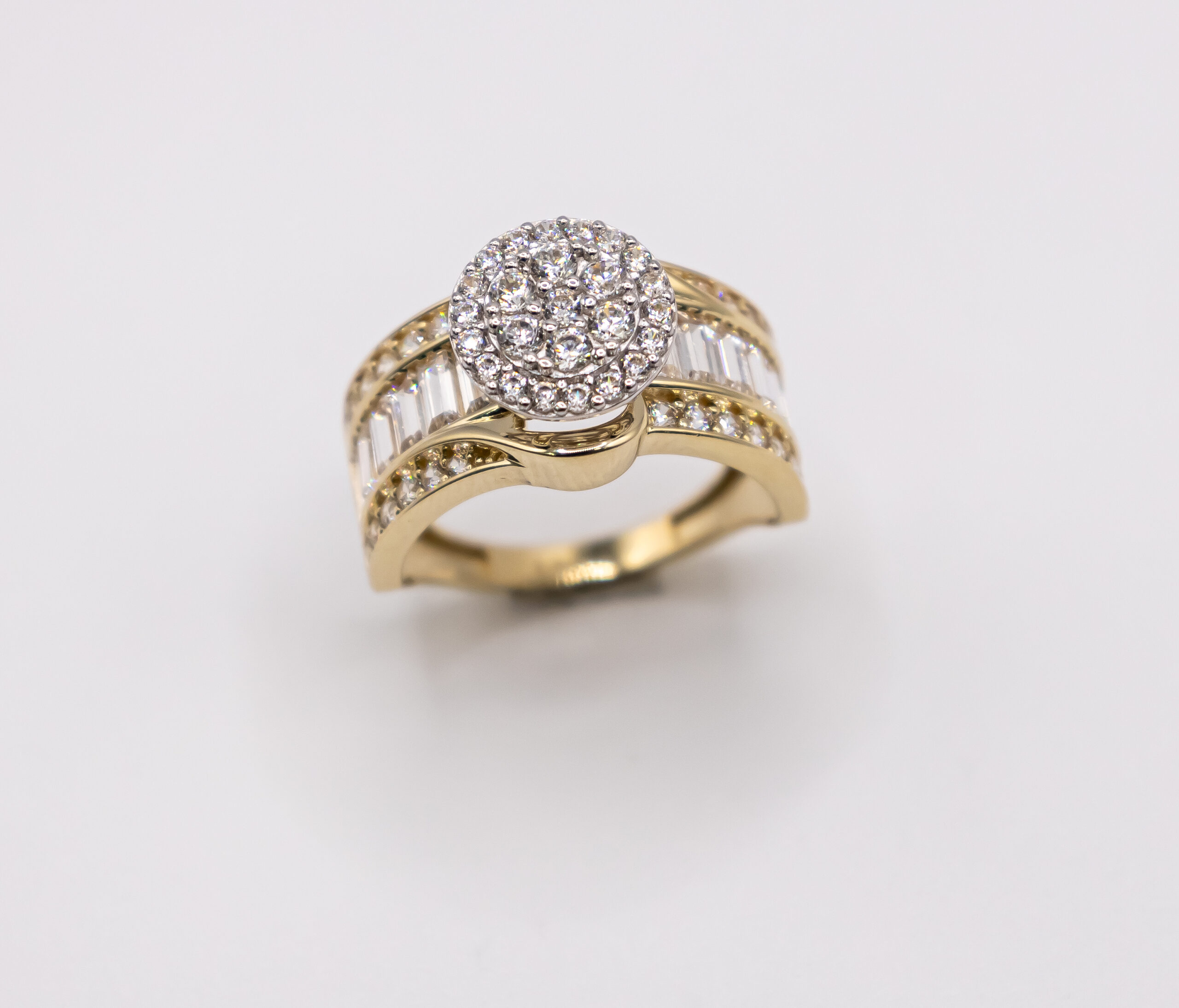 Oro 10k, con zirconia redondas y en forma de baguet, Size 8