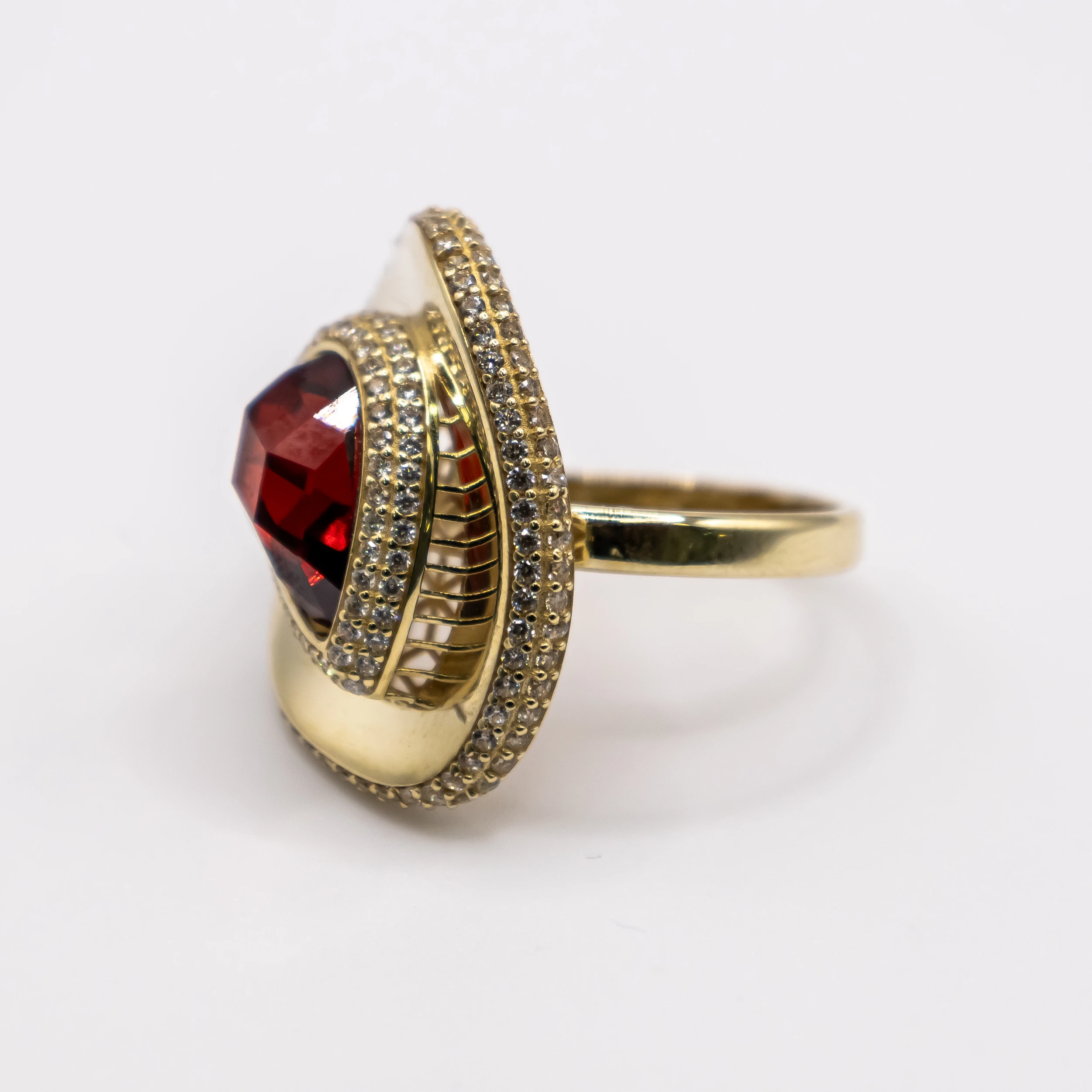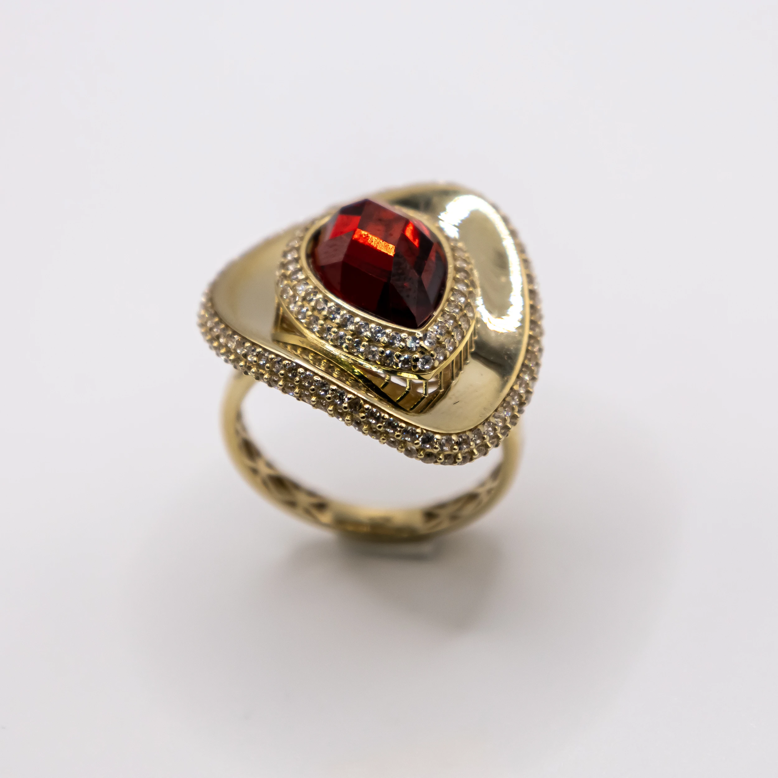Oro 10k con zirconia y Piedra color Roja, Size 9