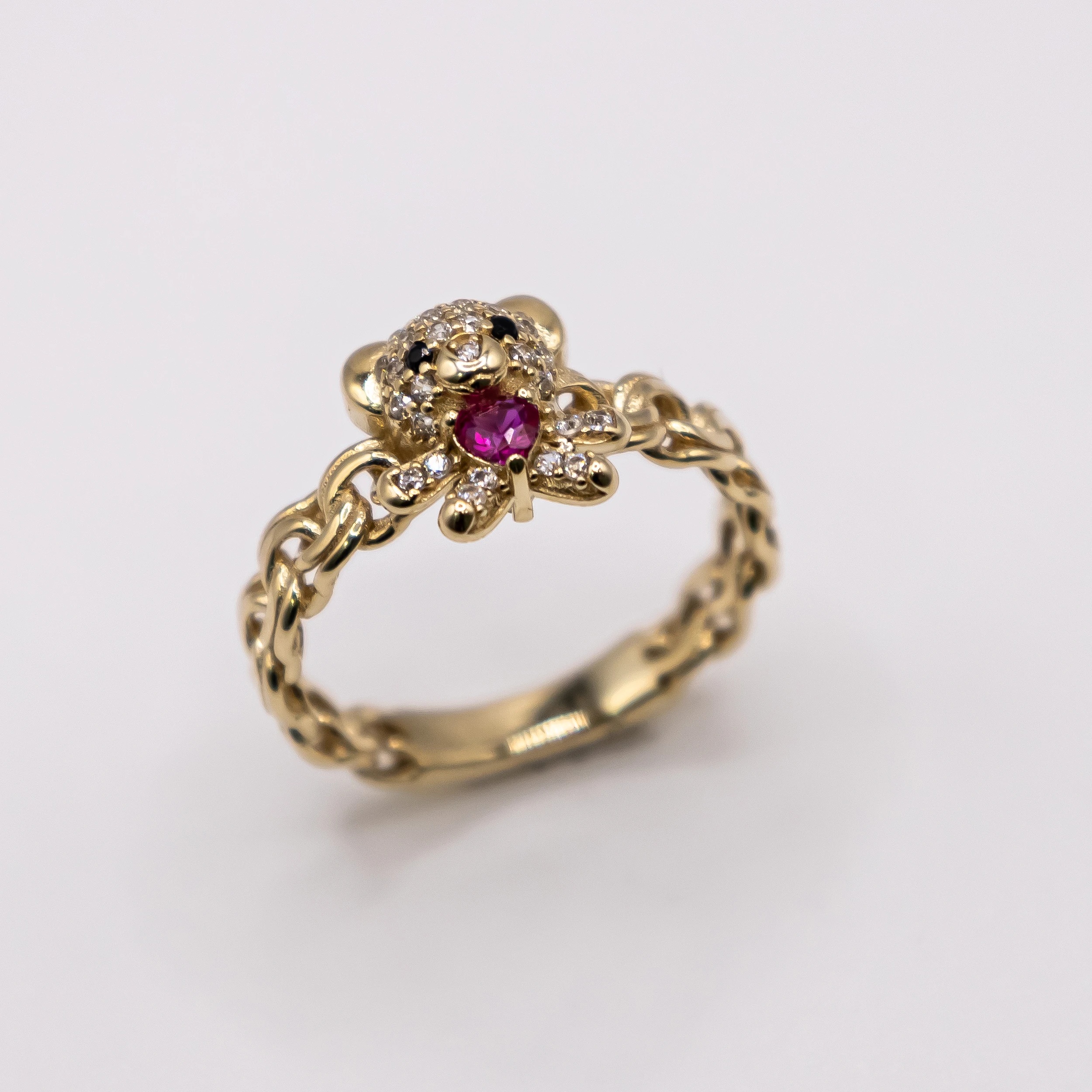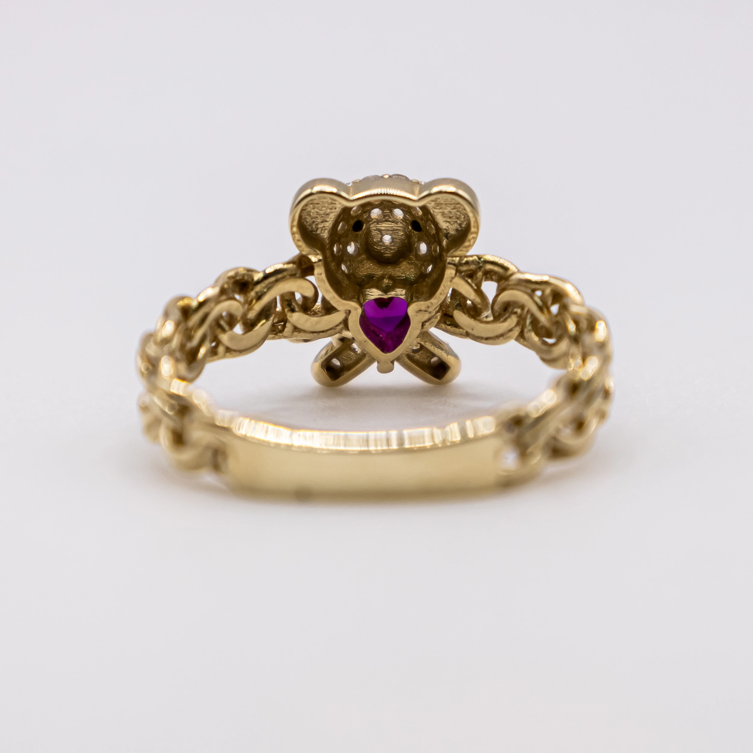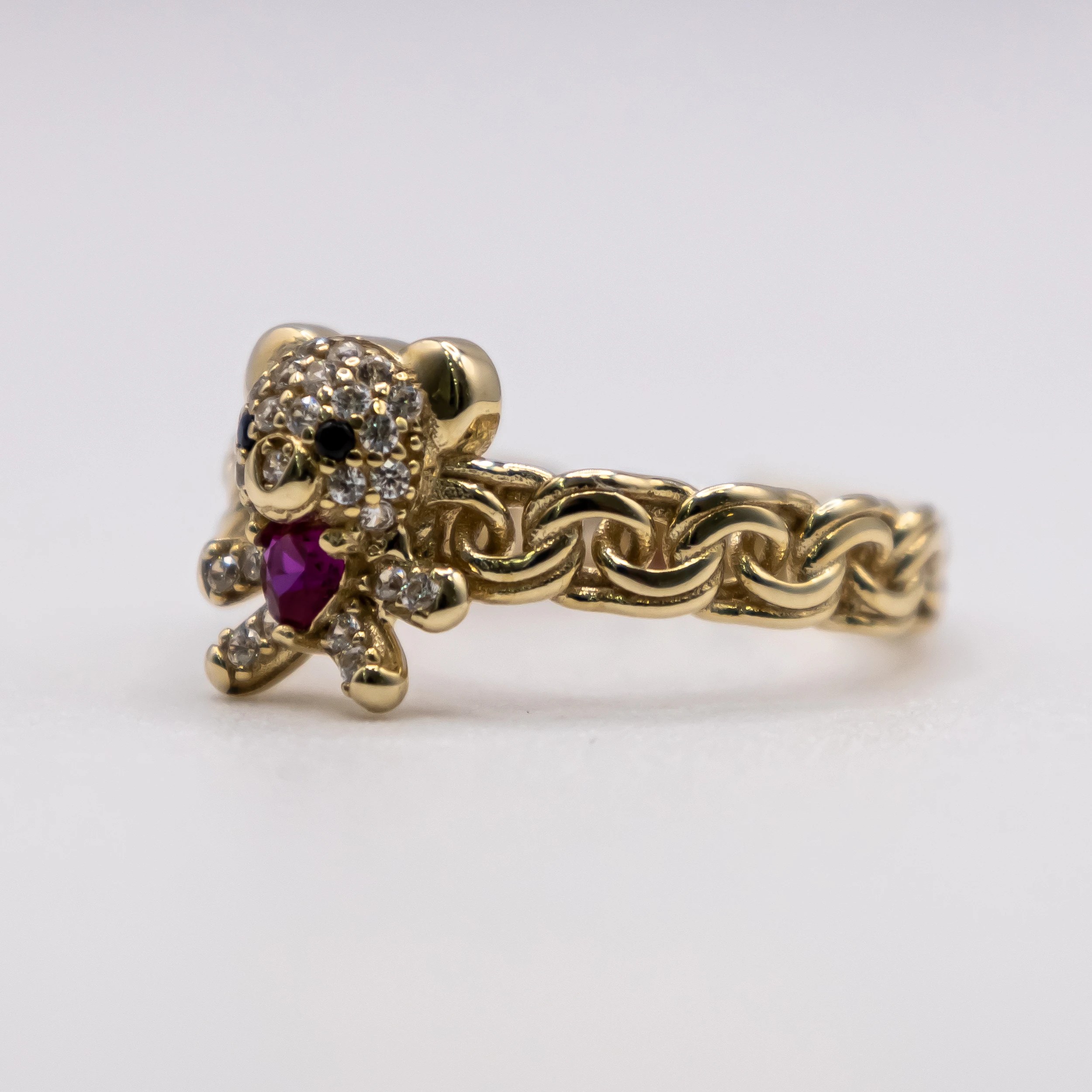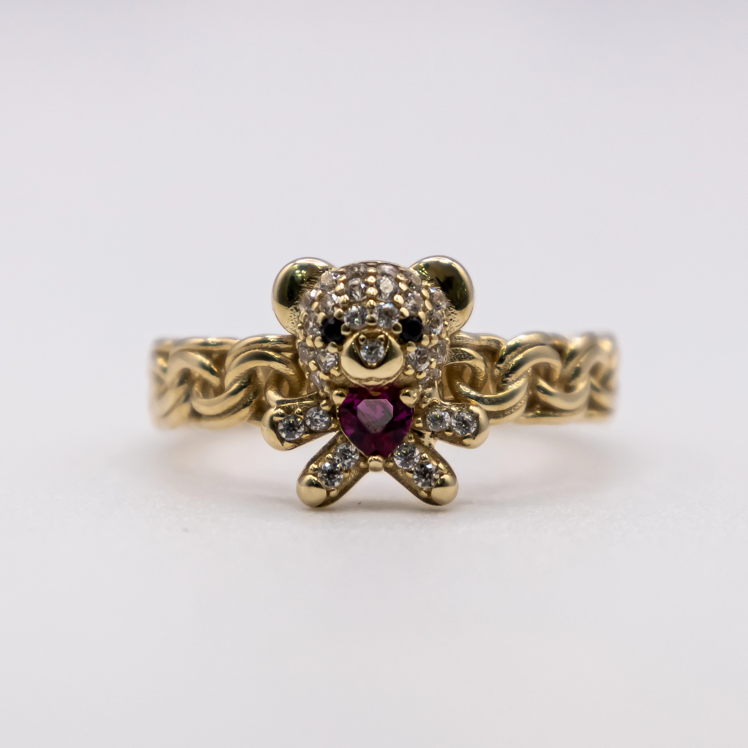 Oro 10k con zirconias y piedra color rosa, Size 7