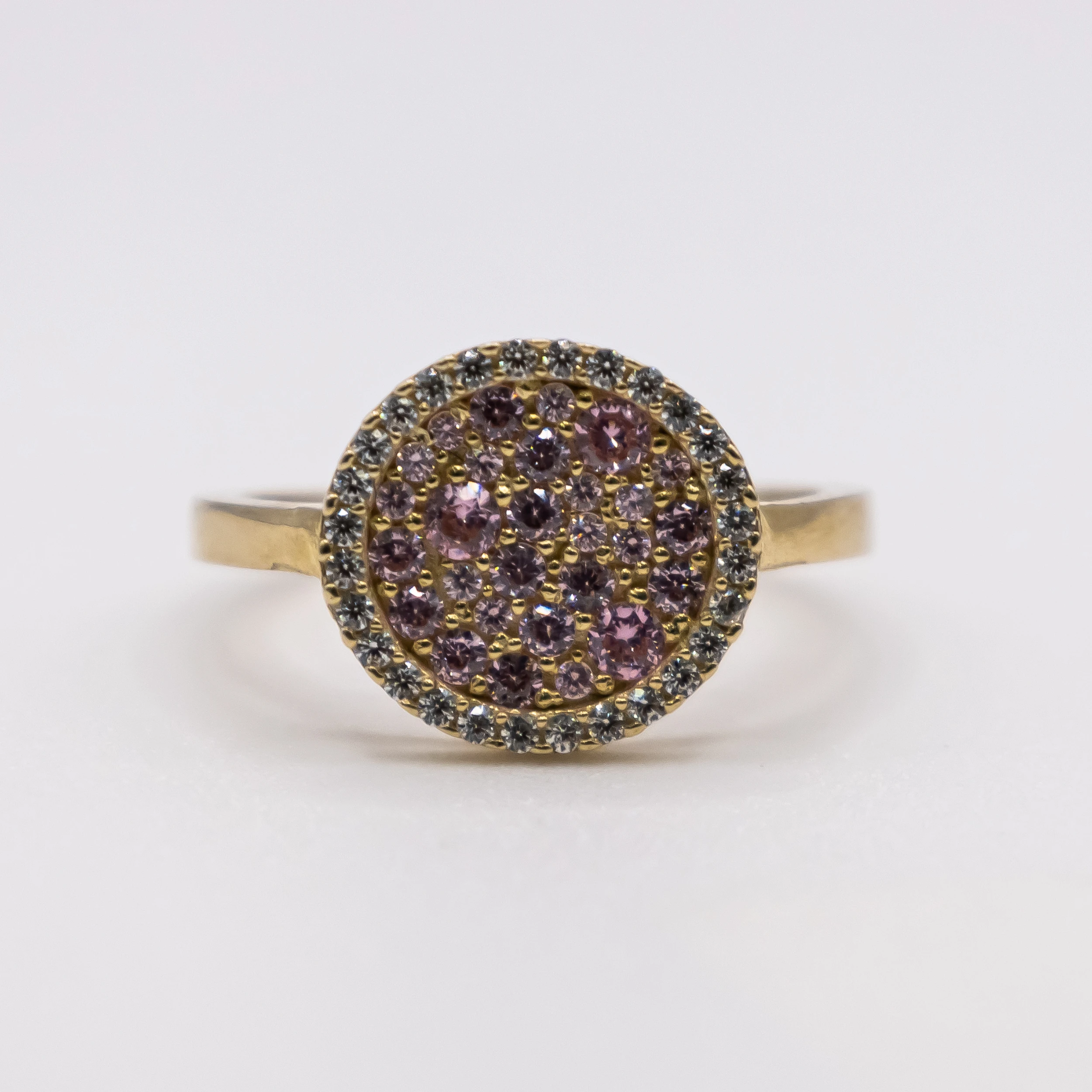 Oro 10k con zirconias de color rosadas, Size 6
