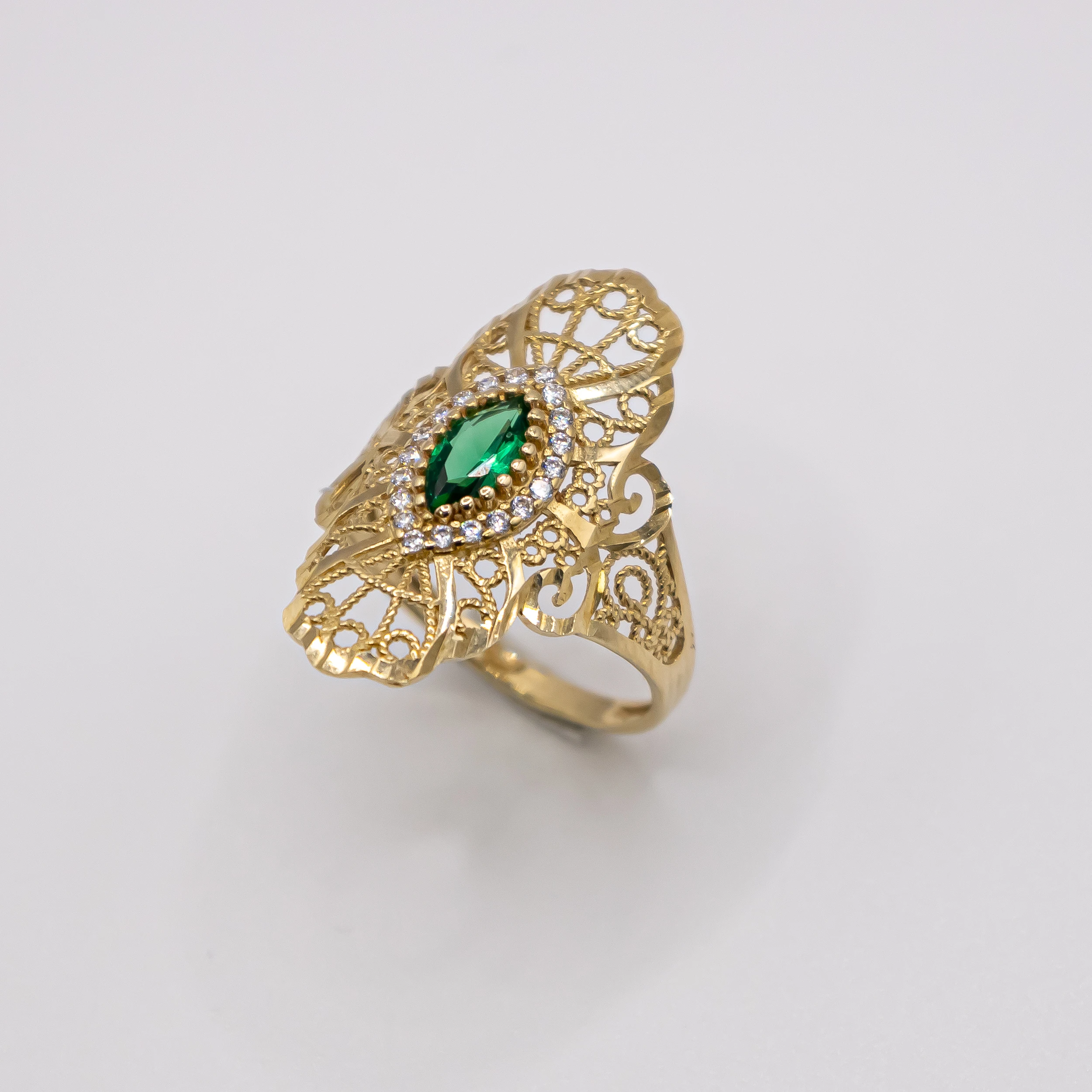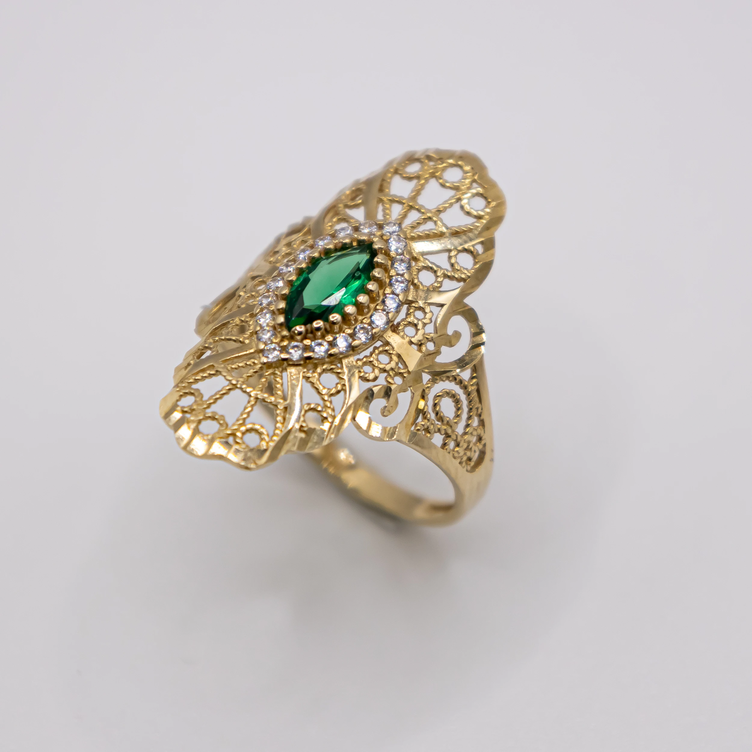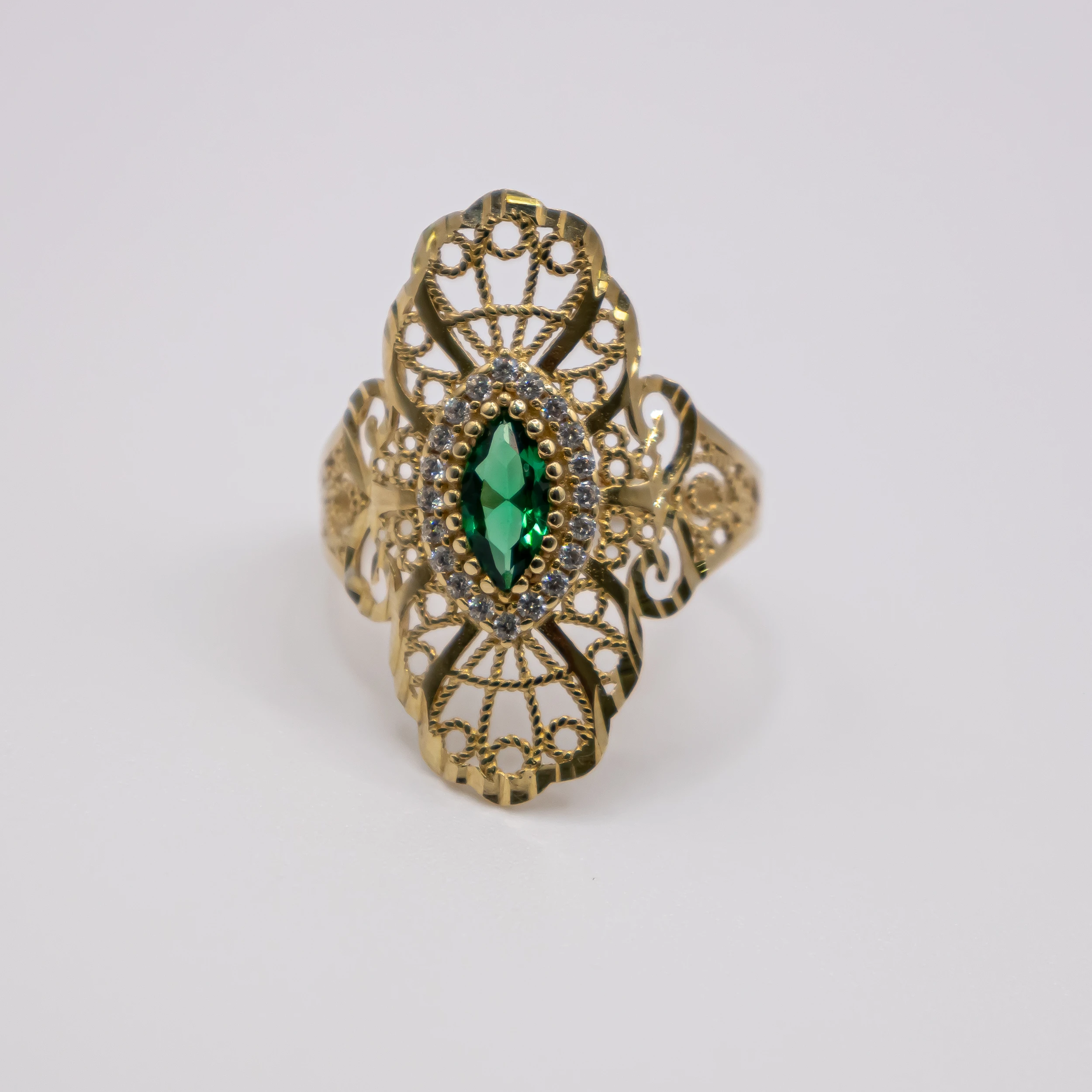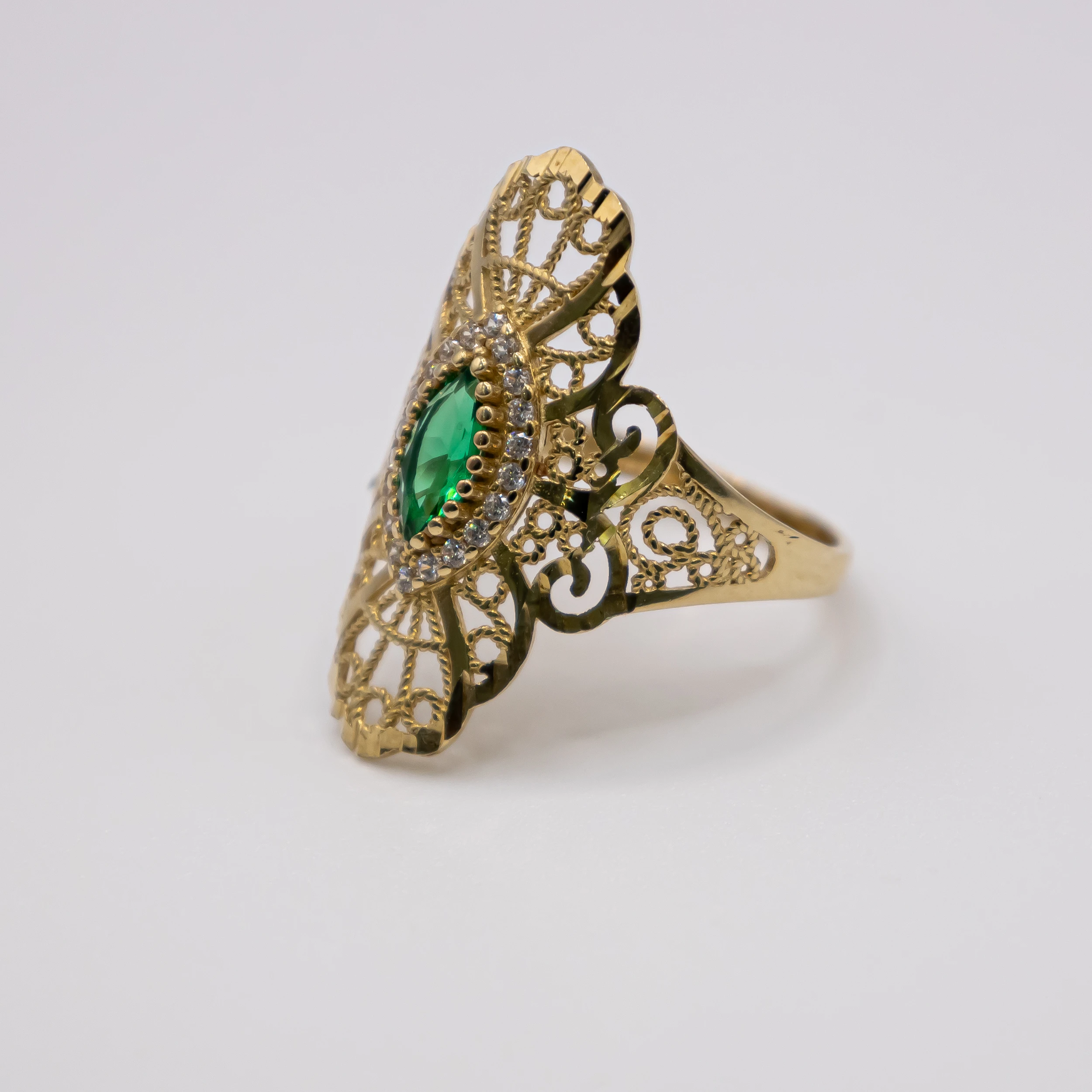 Oro 10k con una piedra verde y zirconia, Size 81/2