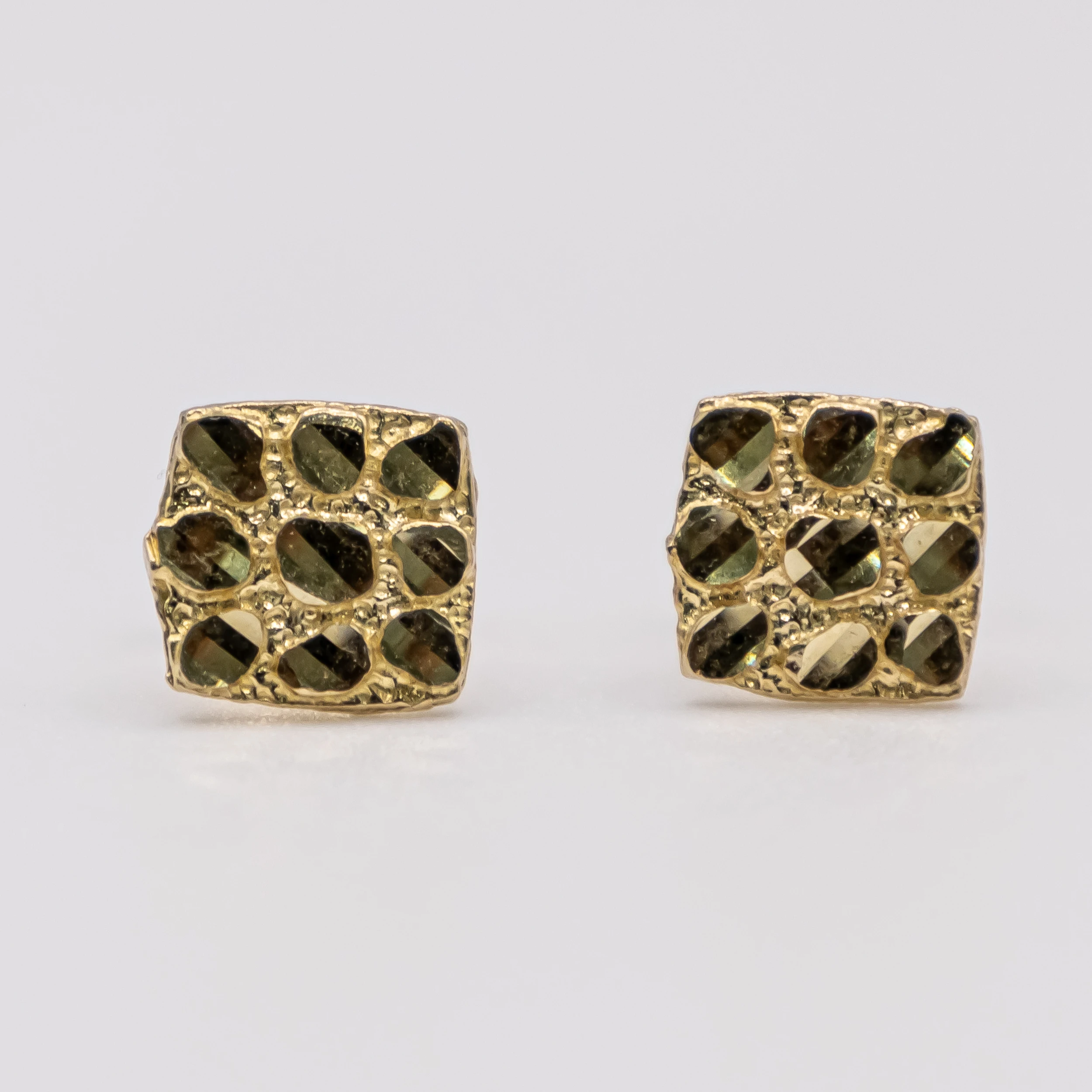 Aretes de oro 10k calados con diseño cuadrado y tamaño grande.