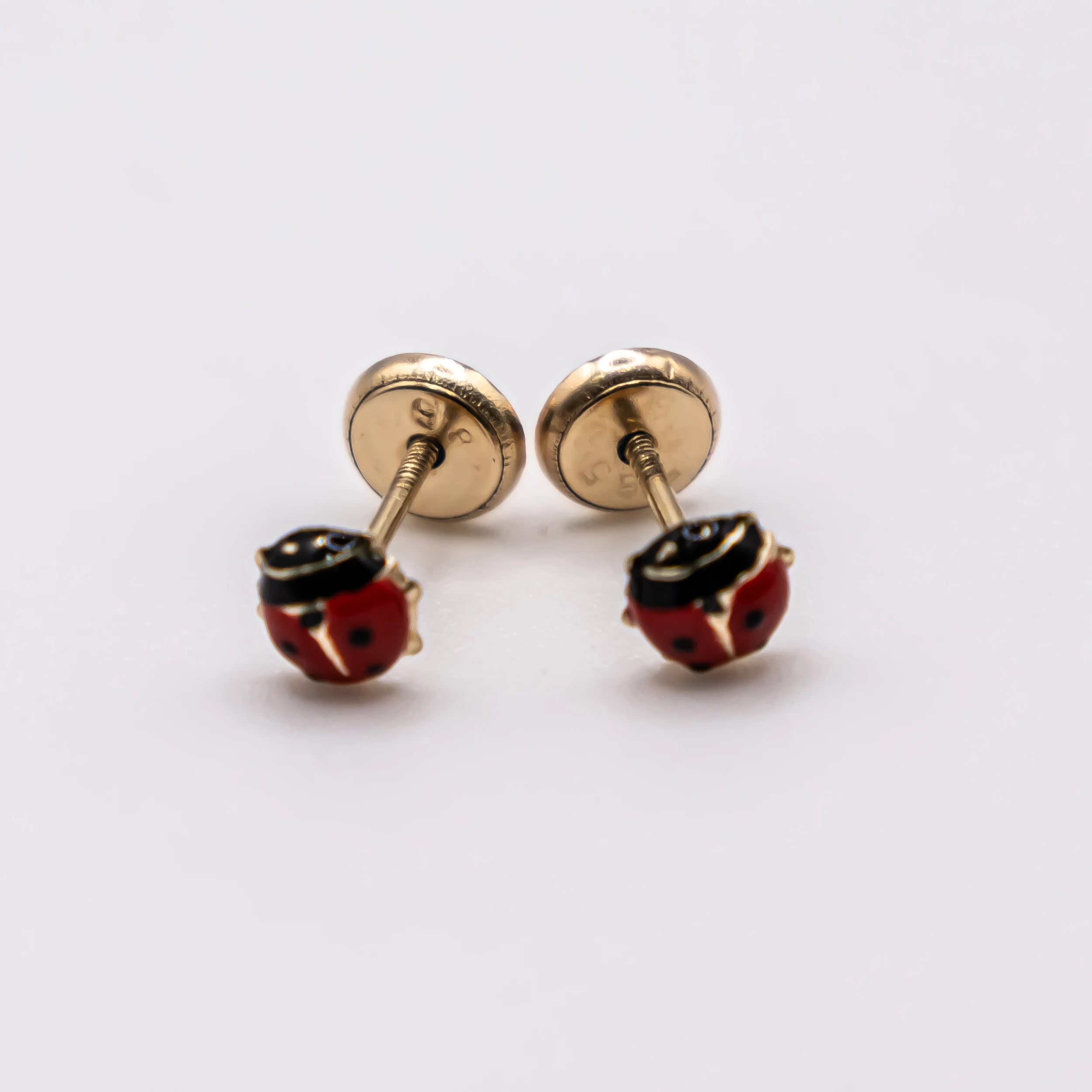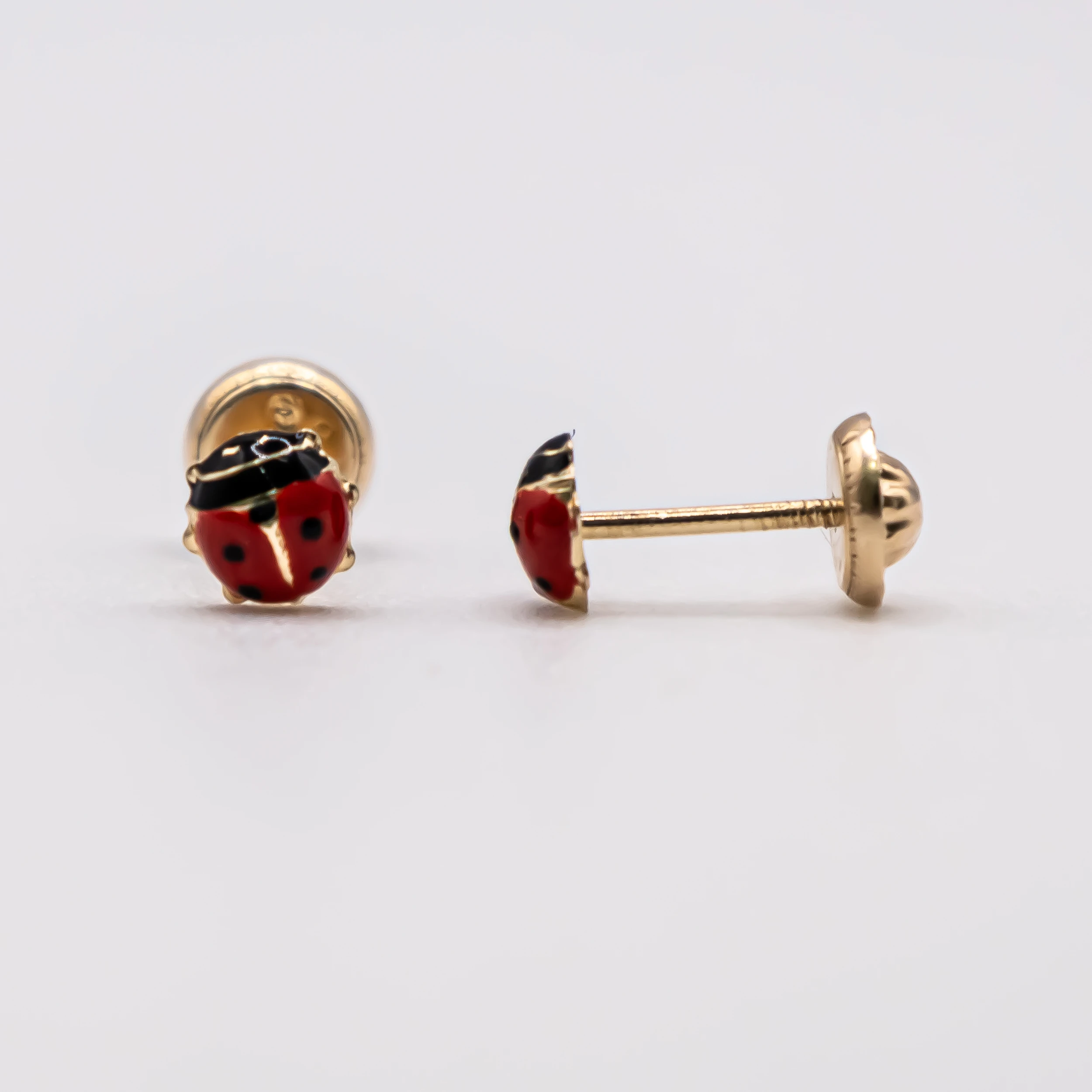 Aretes de mariquitas pequeñas color rojo 14k