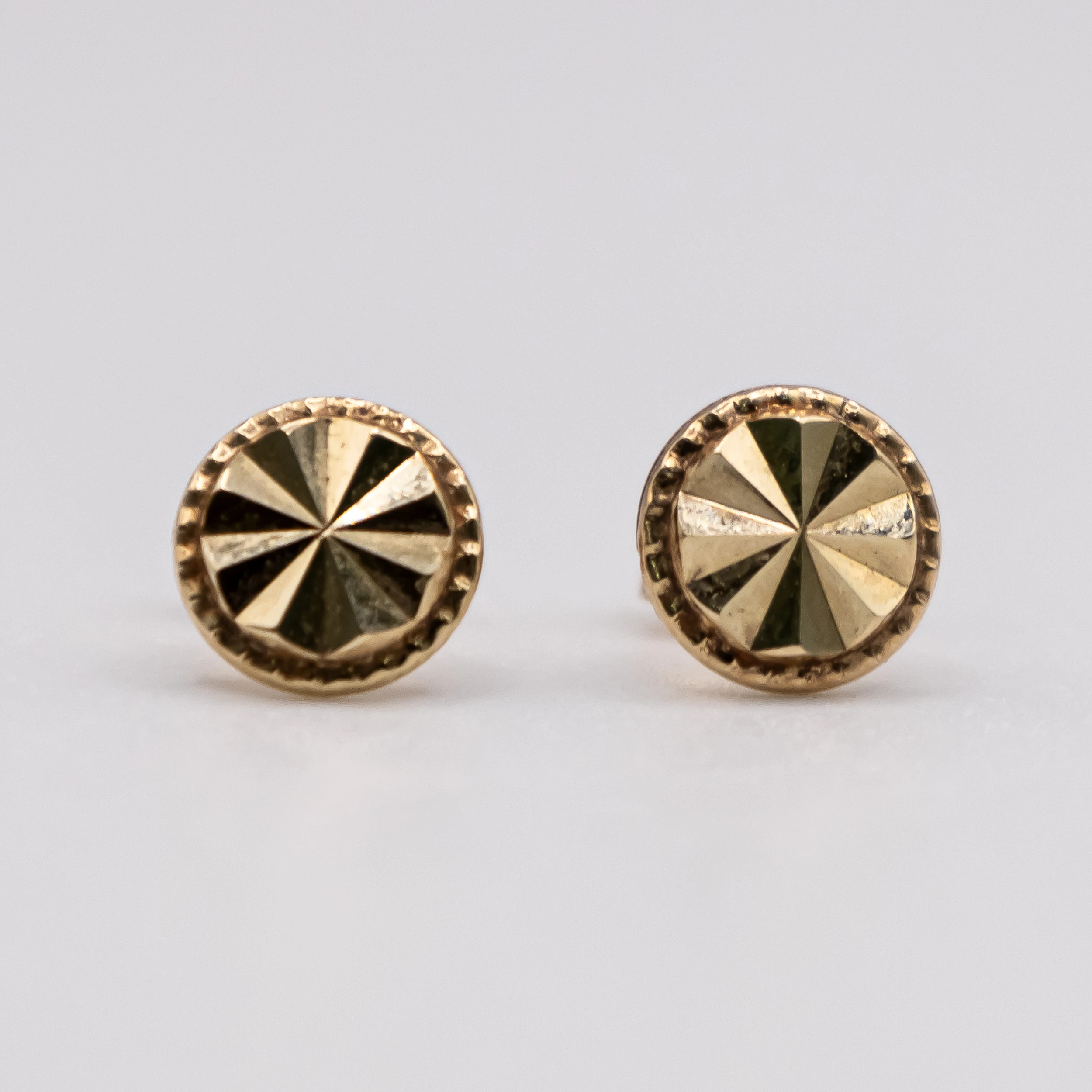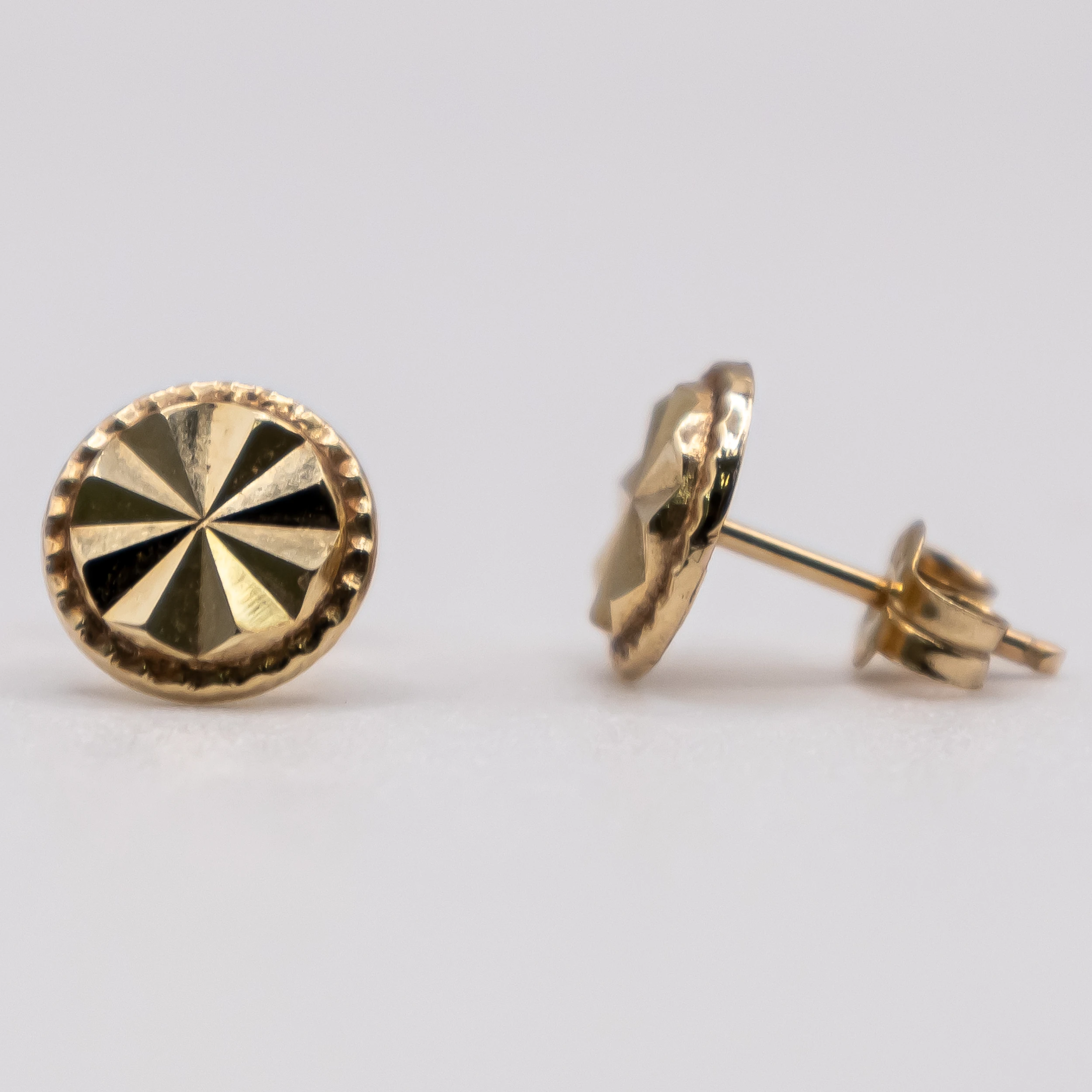 Aretes de oro 14k con diseño redondo de corte brillo.