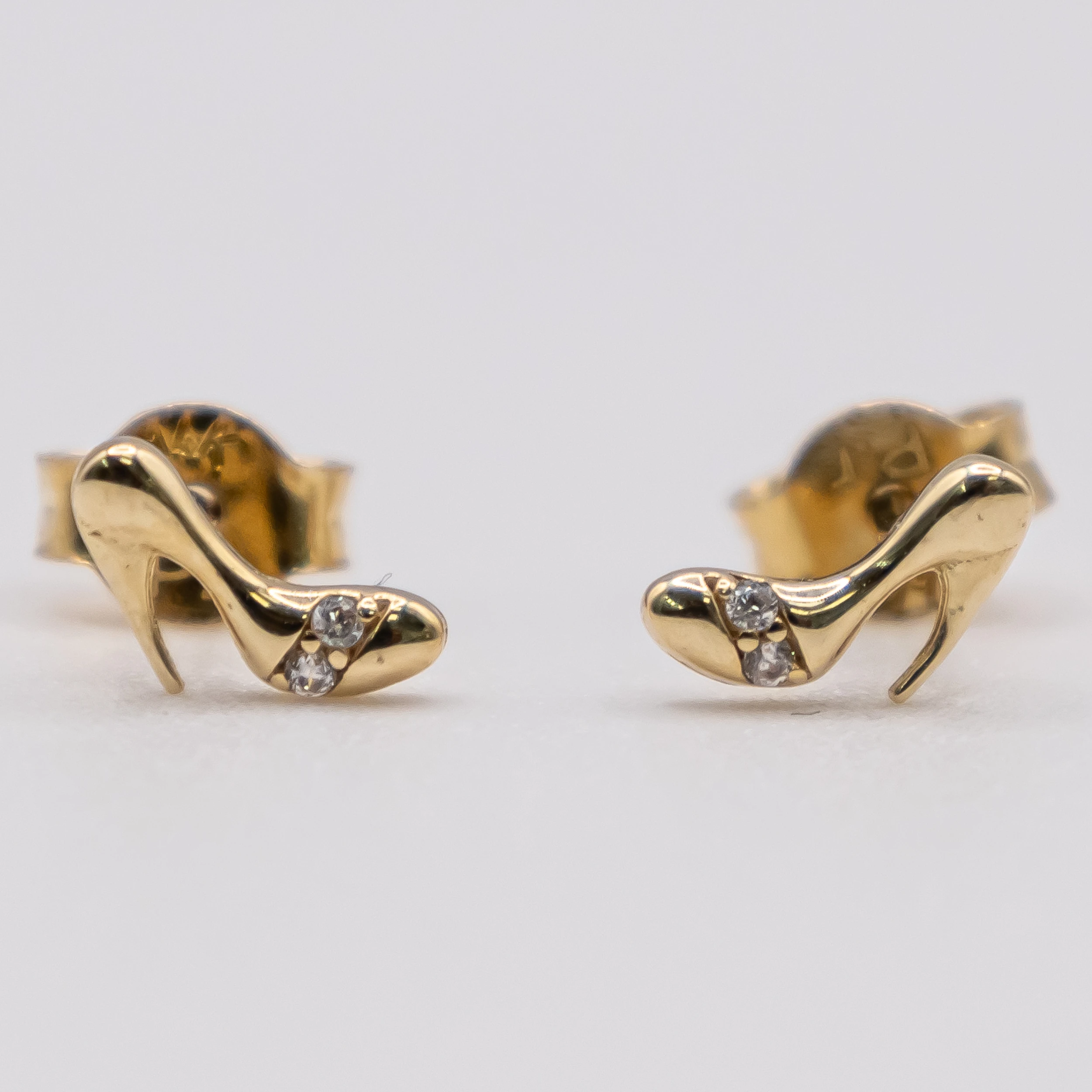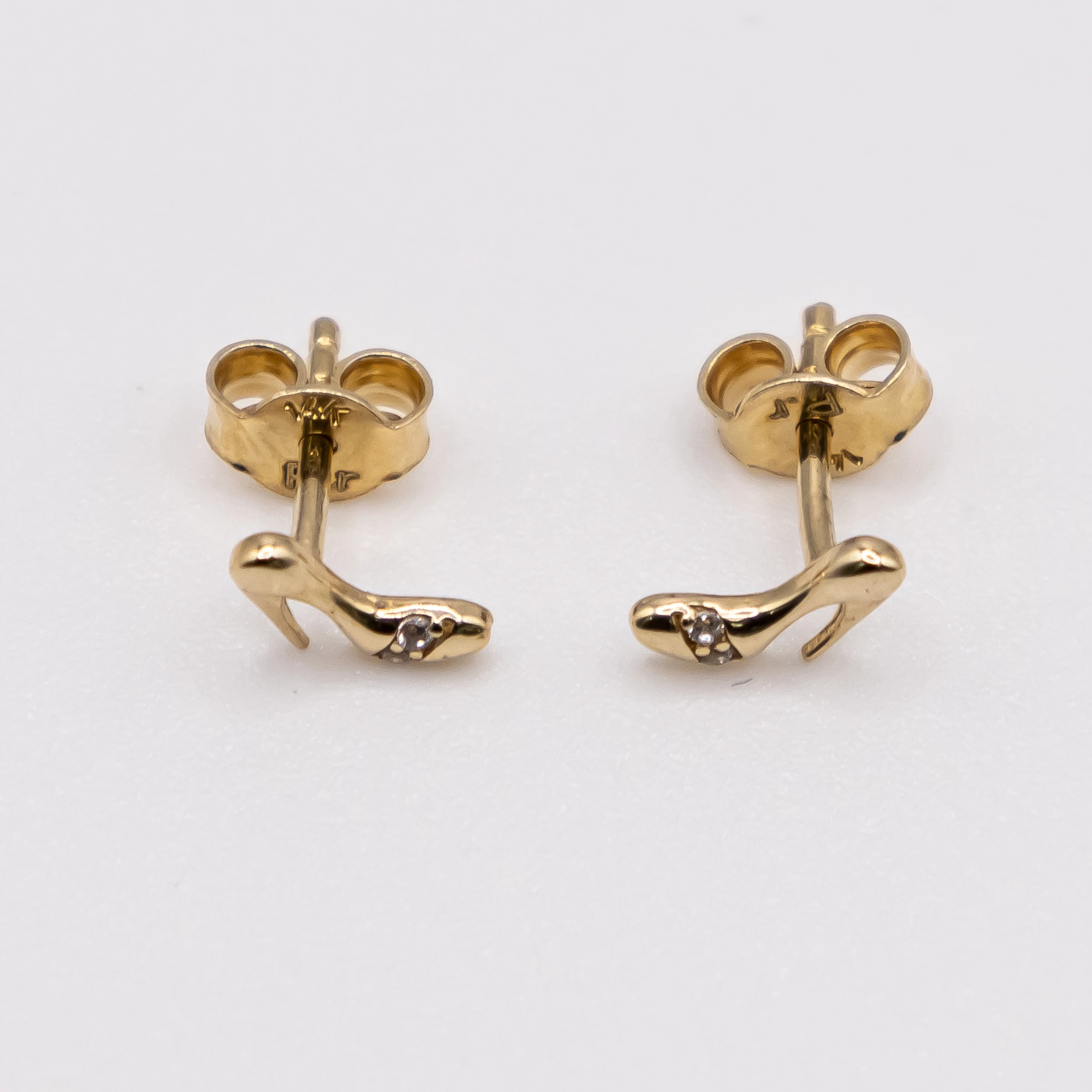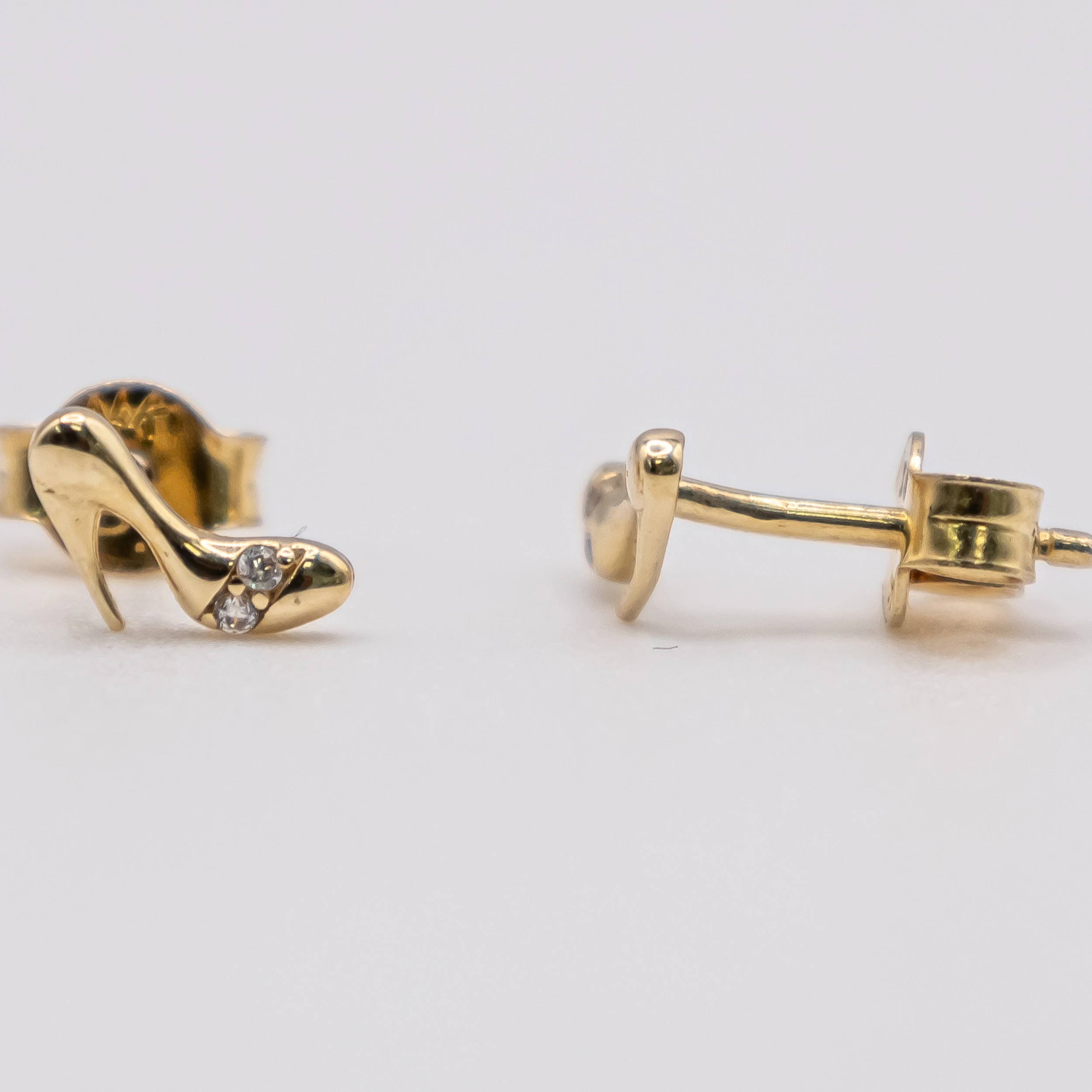 Aretes de oro 14k y zirconia con diseño de tacón.