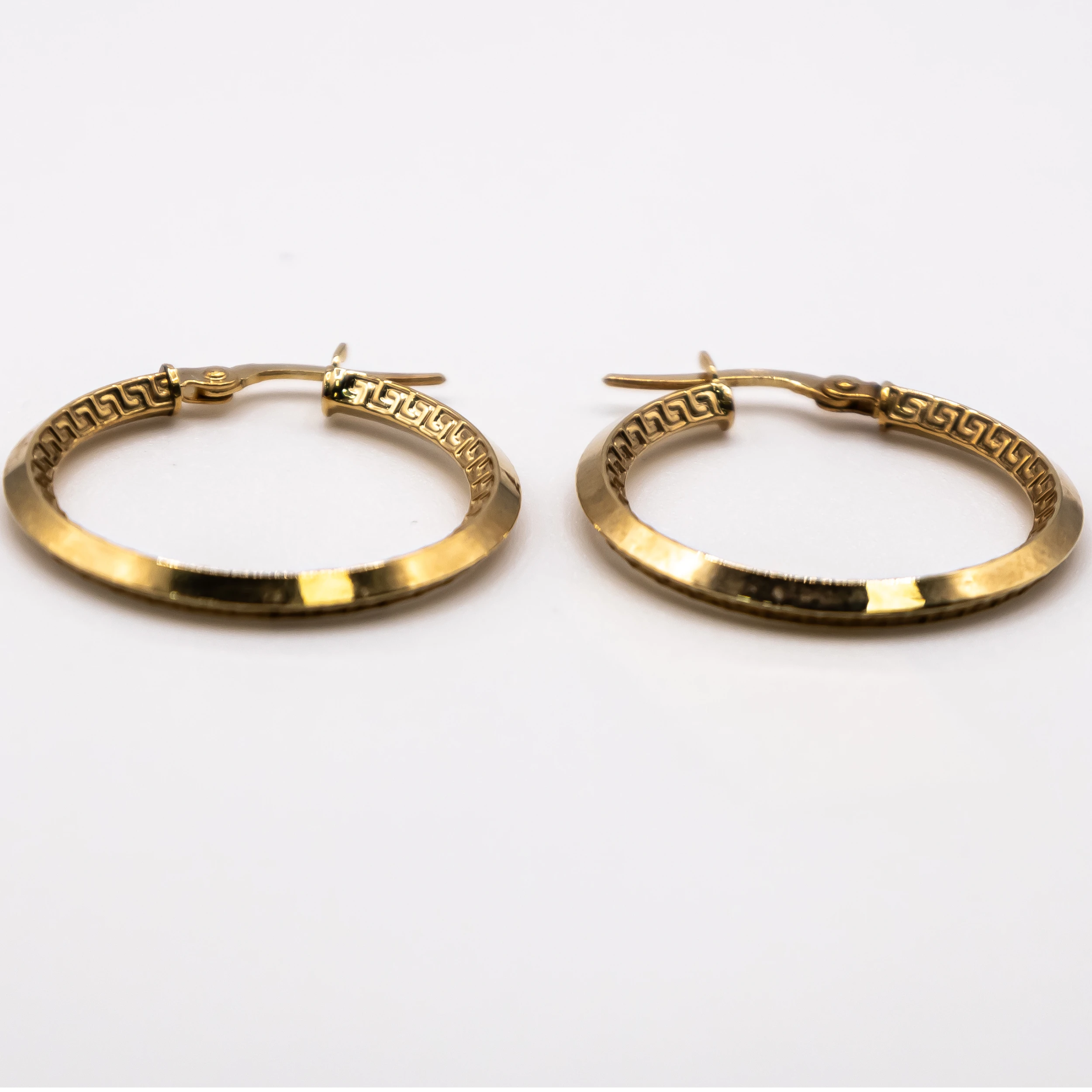 Argollas de oro 10k con aros diseño estilo Versace, 16.1mm de Diámetro