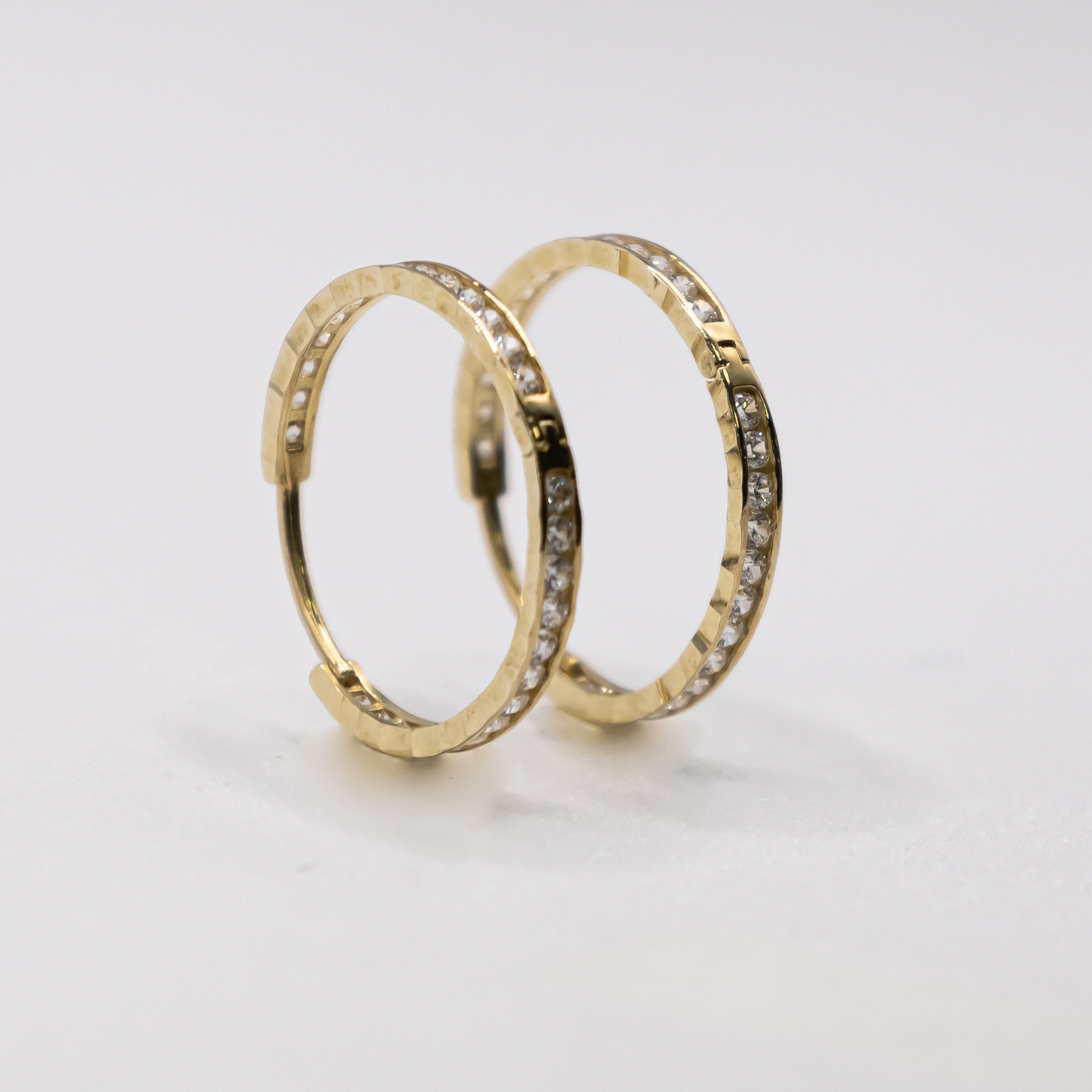 Argollas de oro 10k con diseño de banda fina y zirconia mediana.
