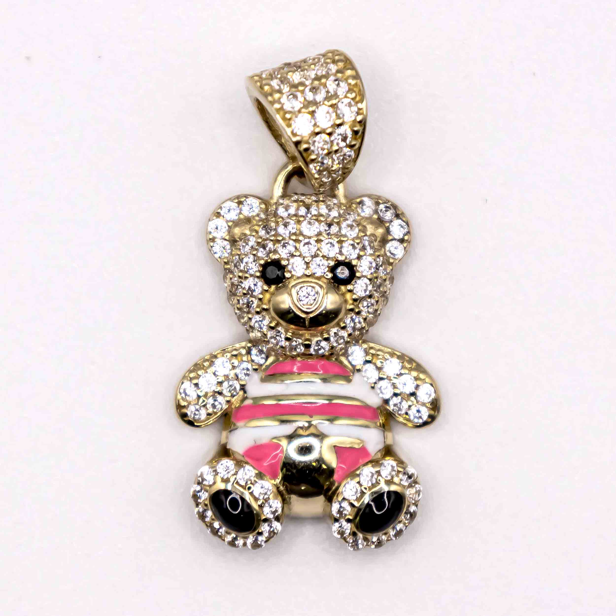 Oro 10k, Oso en Camiseta de Raya con zirconias
