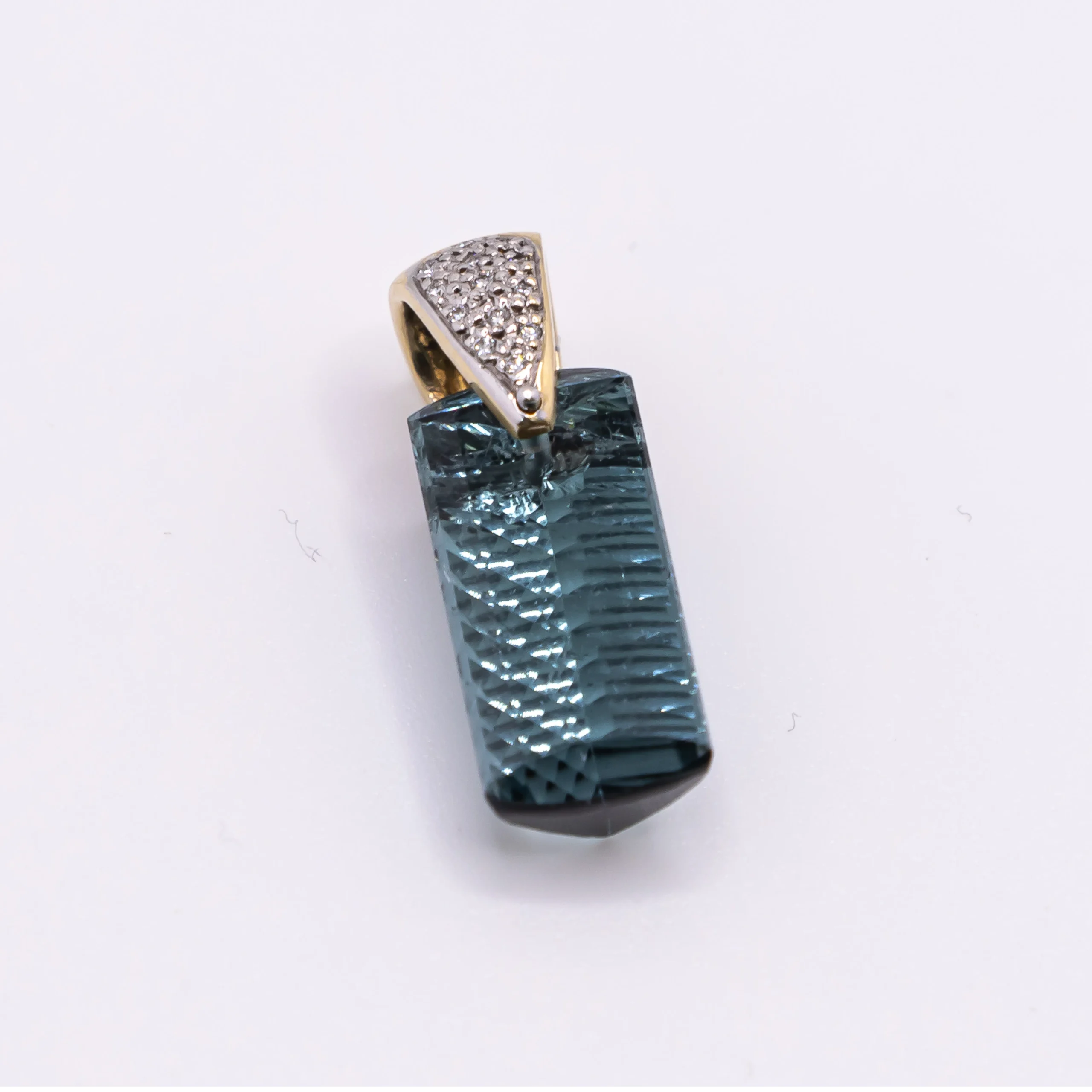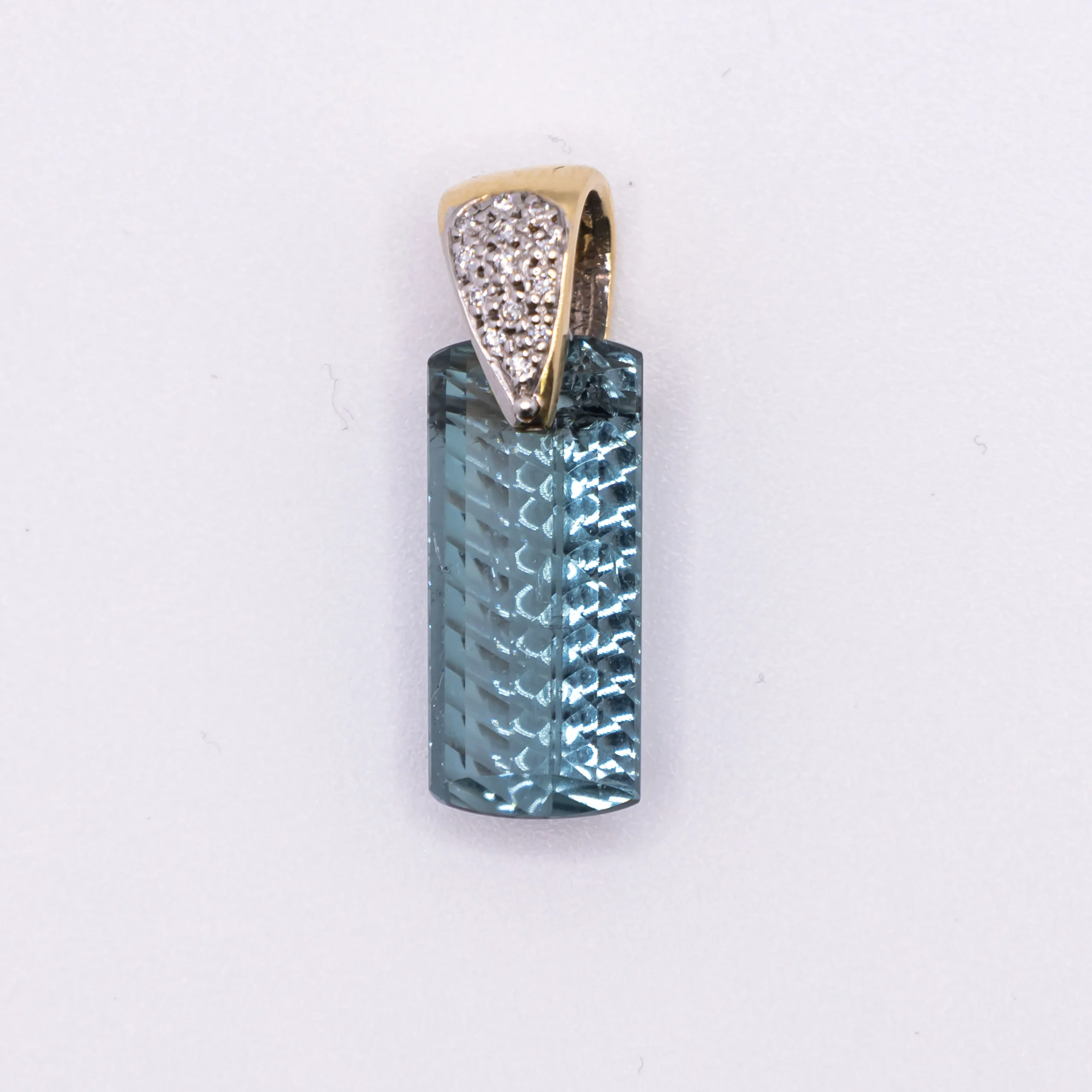 Dije con piedra Aguamarina y zirconia en la argolla 14k
