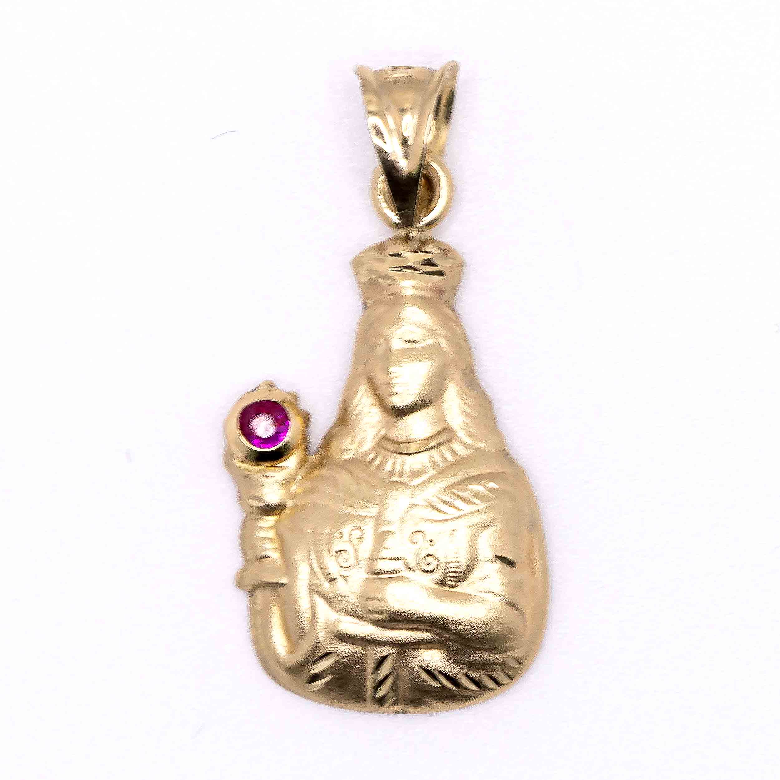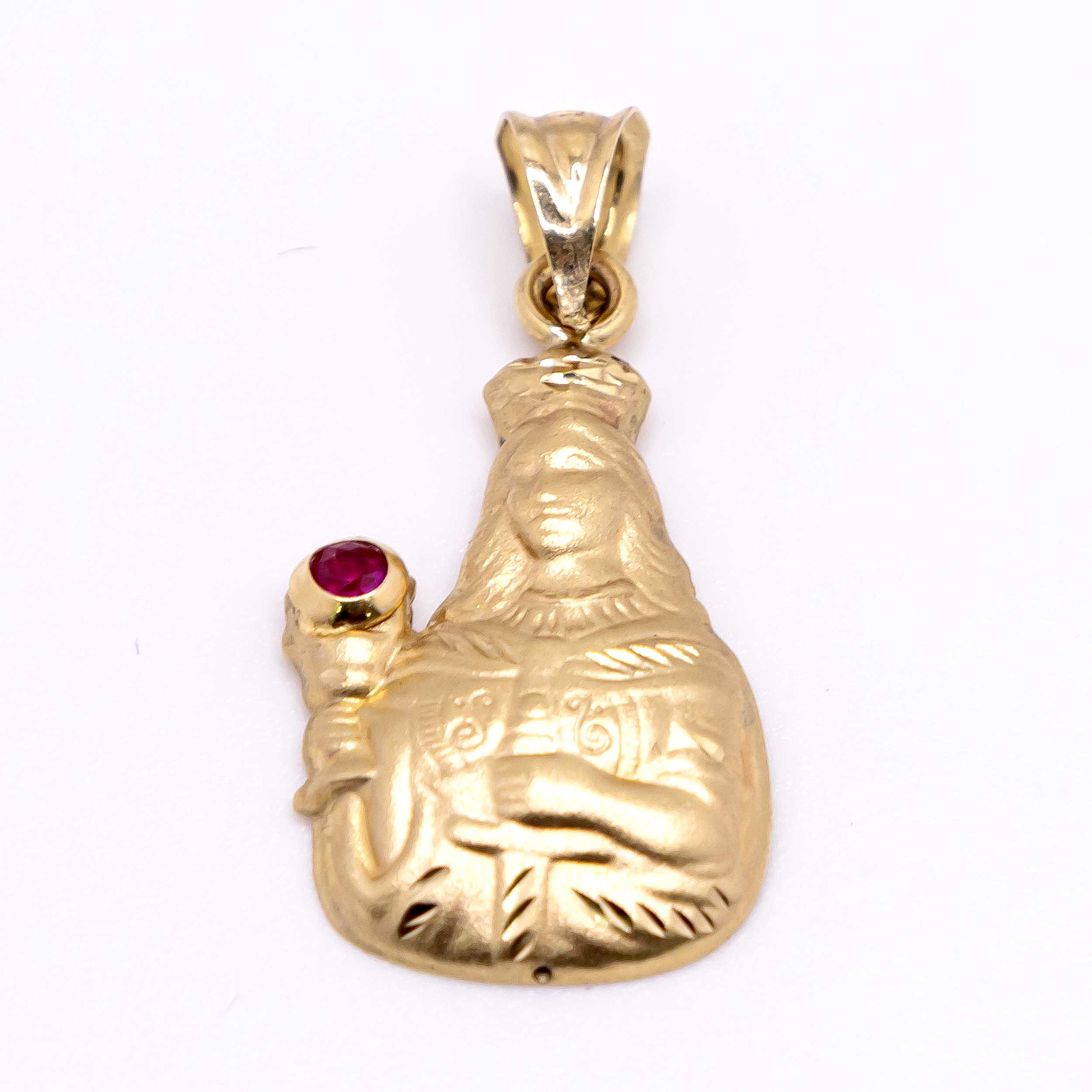 Oro 10k, Silueta de Santa Bárbara con piedra roja