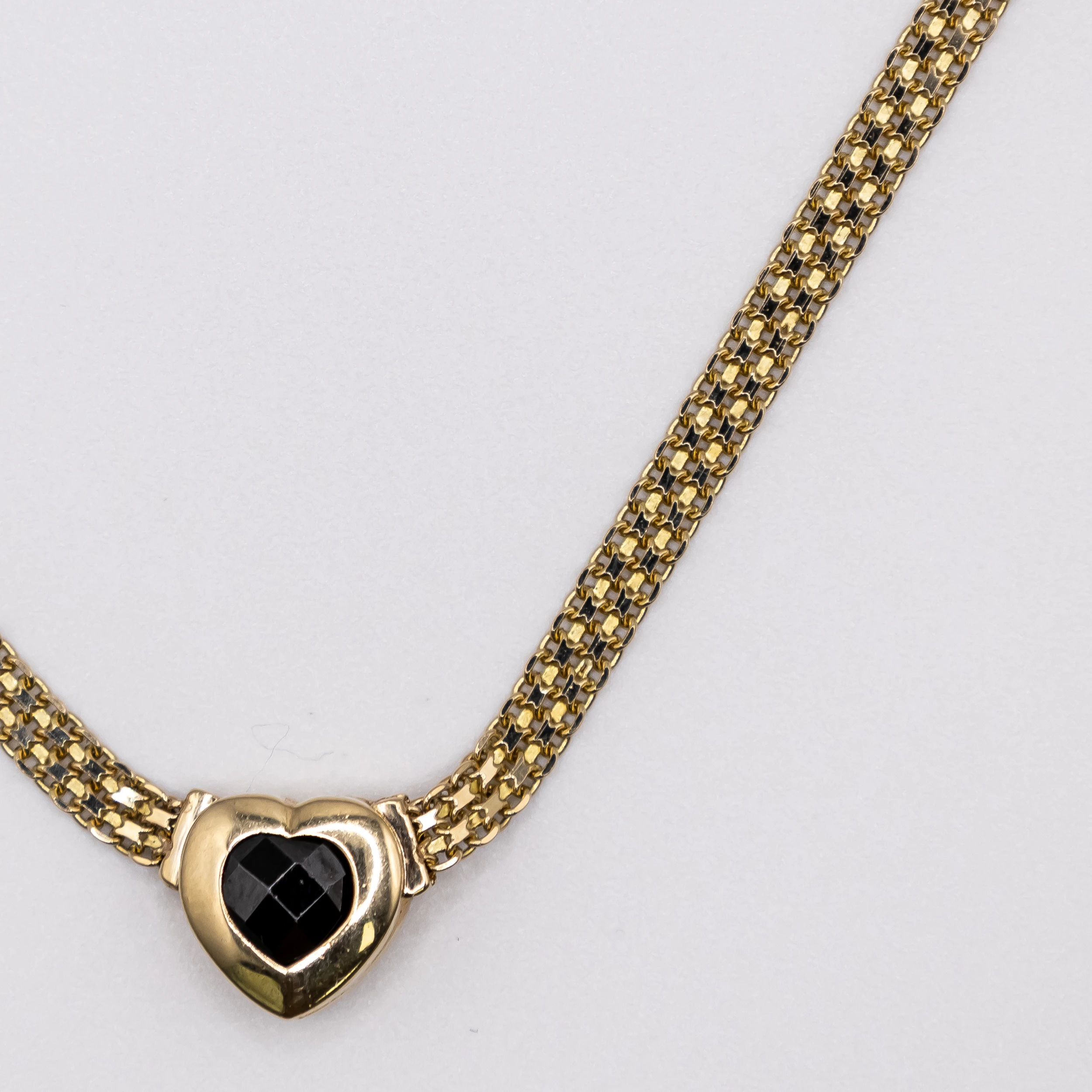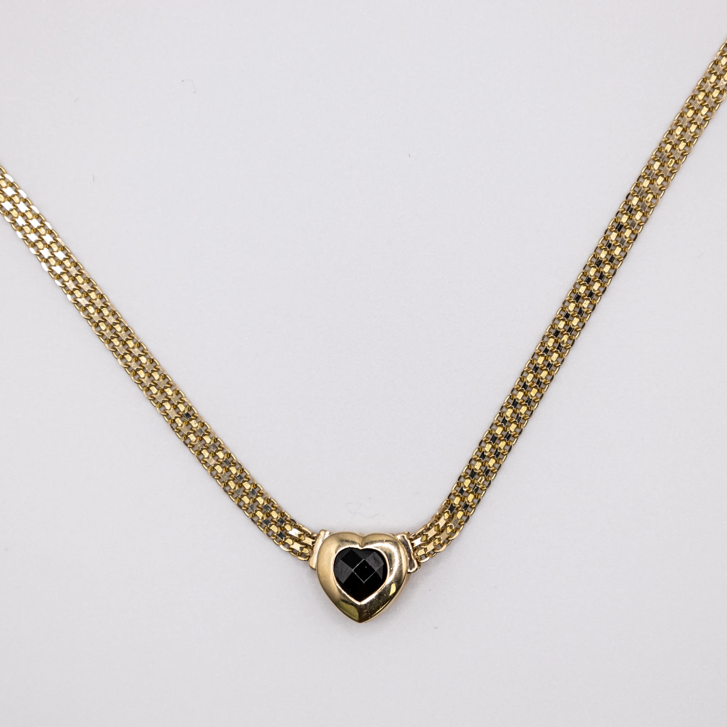 Gargantilla de oro 14k, diseño Bismark adornado con corazón en piedra negra 5mm, 16 pulg.