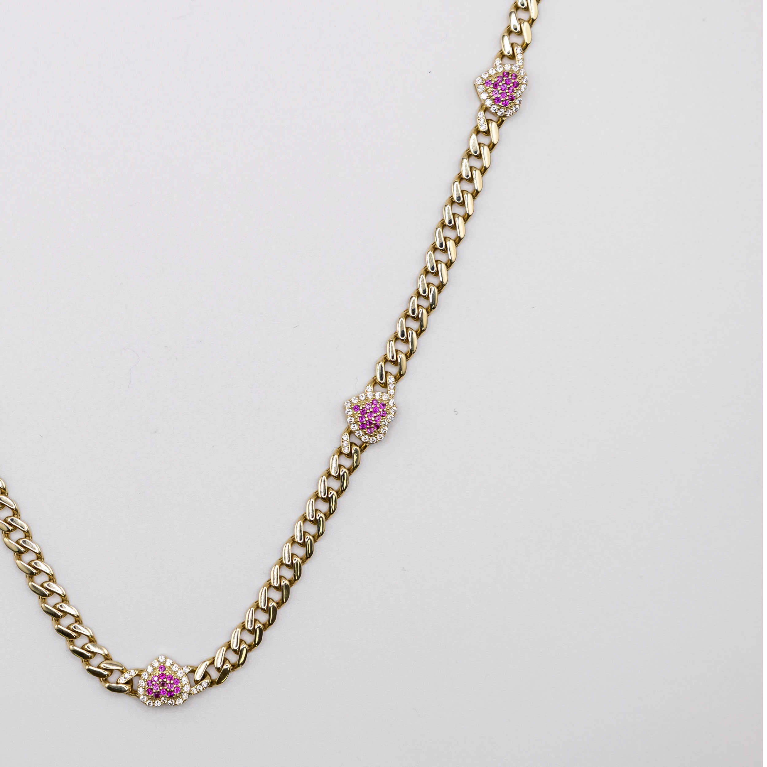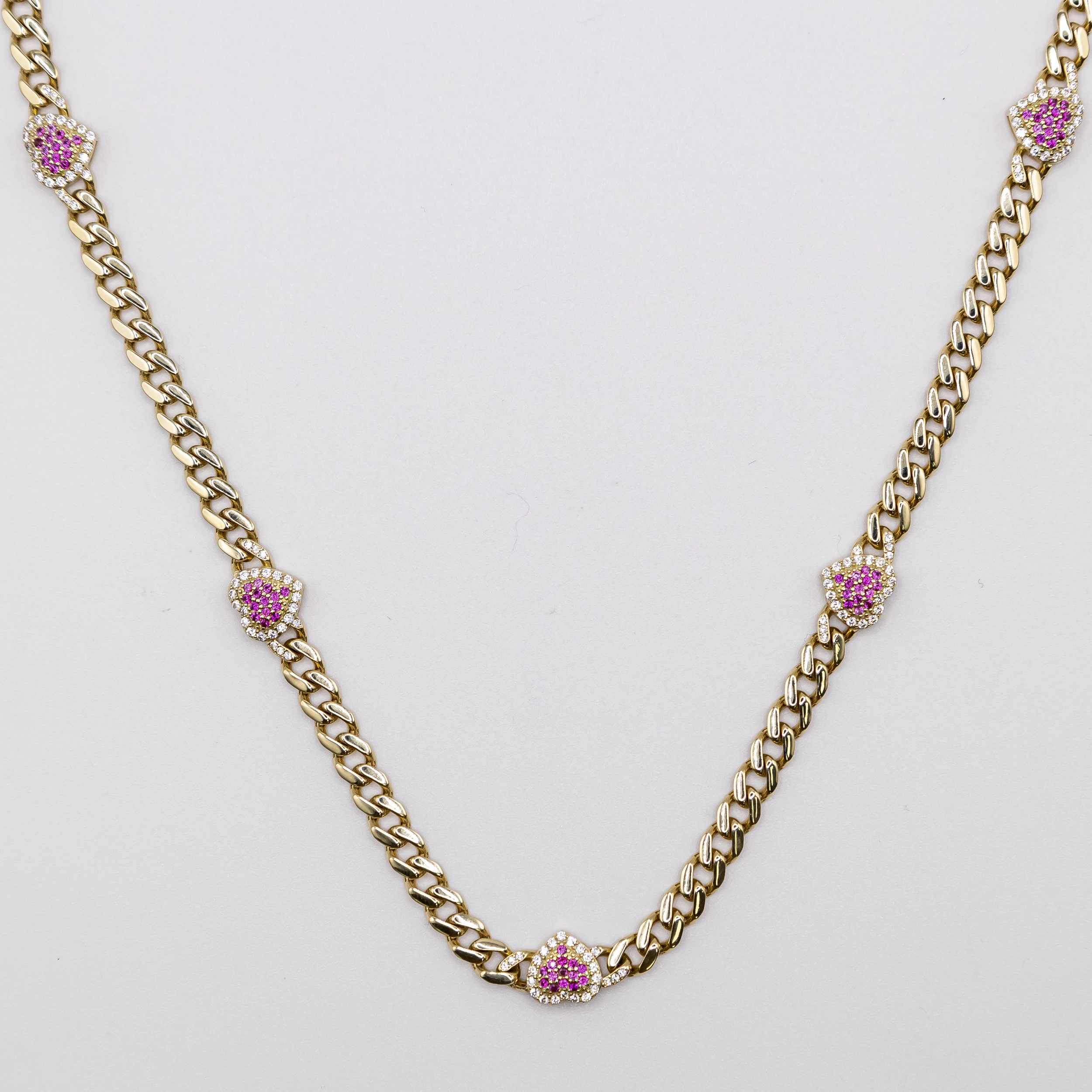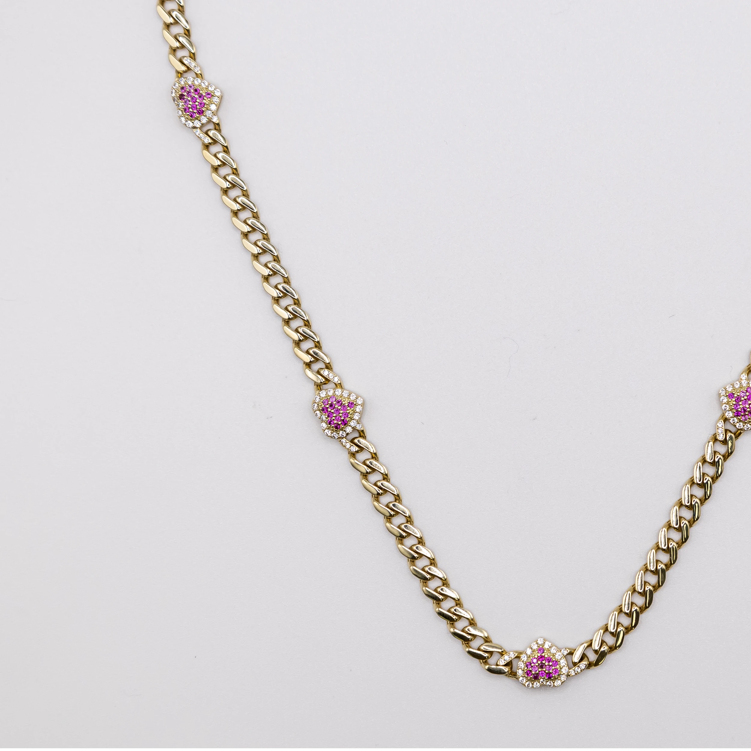 Gargantilla de oro 10k, con corazones adornados con zirconia 4,6mm, 18 pulg